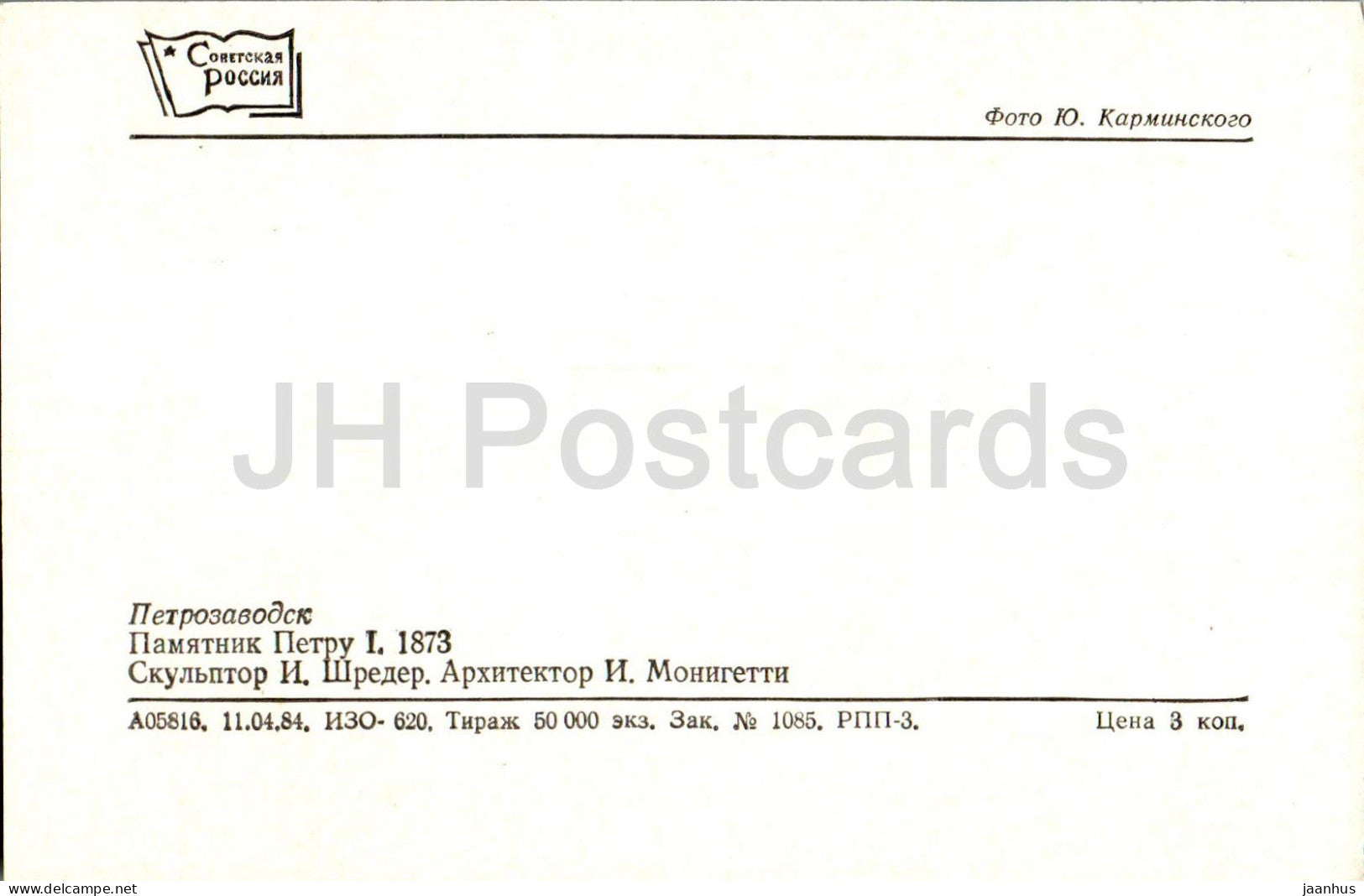 Petrozavodsk - monument à Pierre le Grand - 1984 - Russie URSS - inutilisé