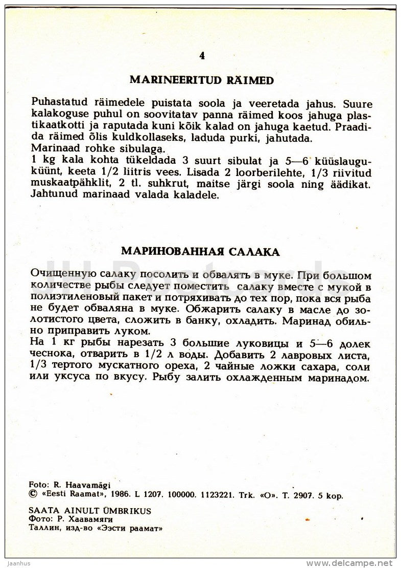 Hareng mariné - Plats de poisson - nourriture - recettes - 1986 - Estonie URSS - inutilisé