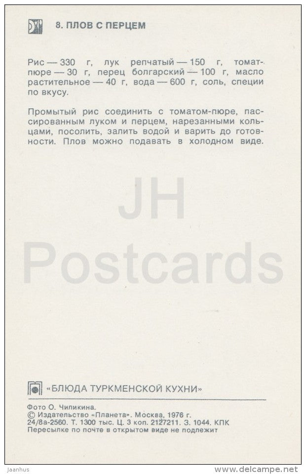 Pilaf au poivre - Plats du Turkménistan - Cuisine - 1976 - Russie URSS - inutilisé