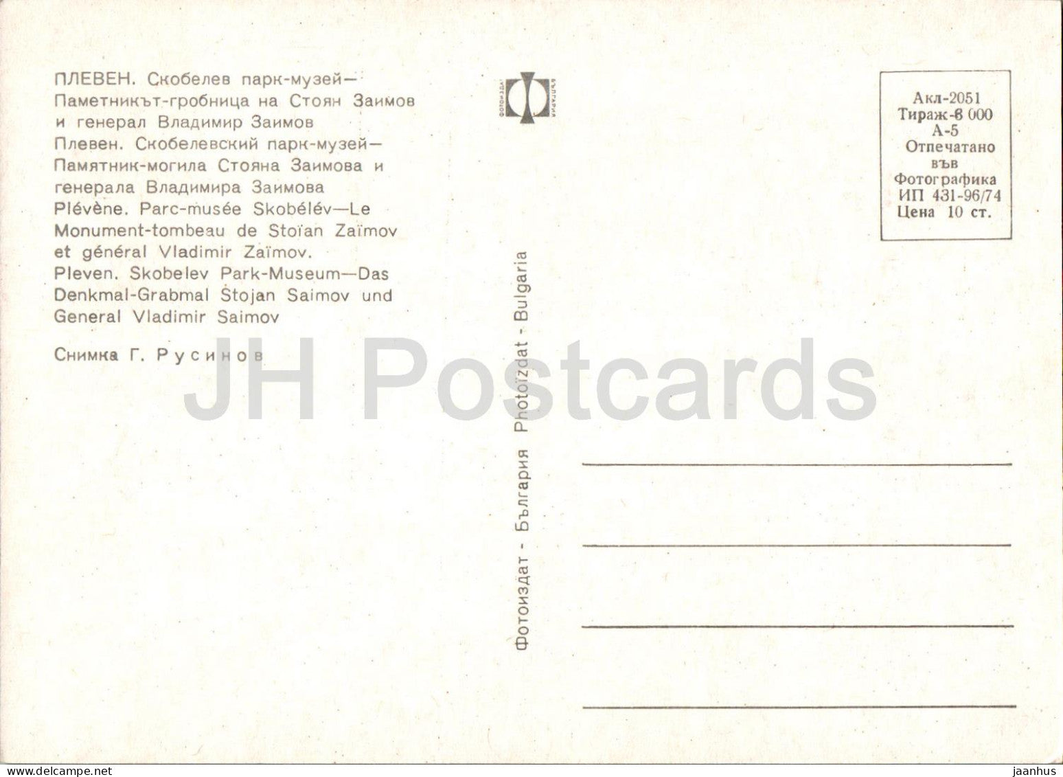 - Éditeur : Fotoizdat , Bulgarie