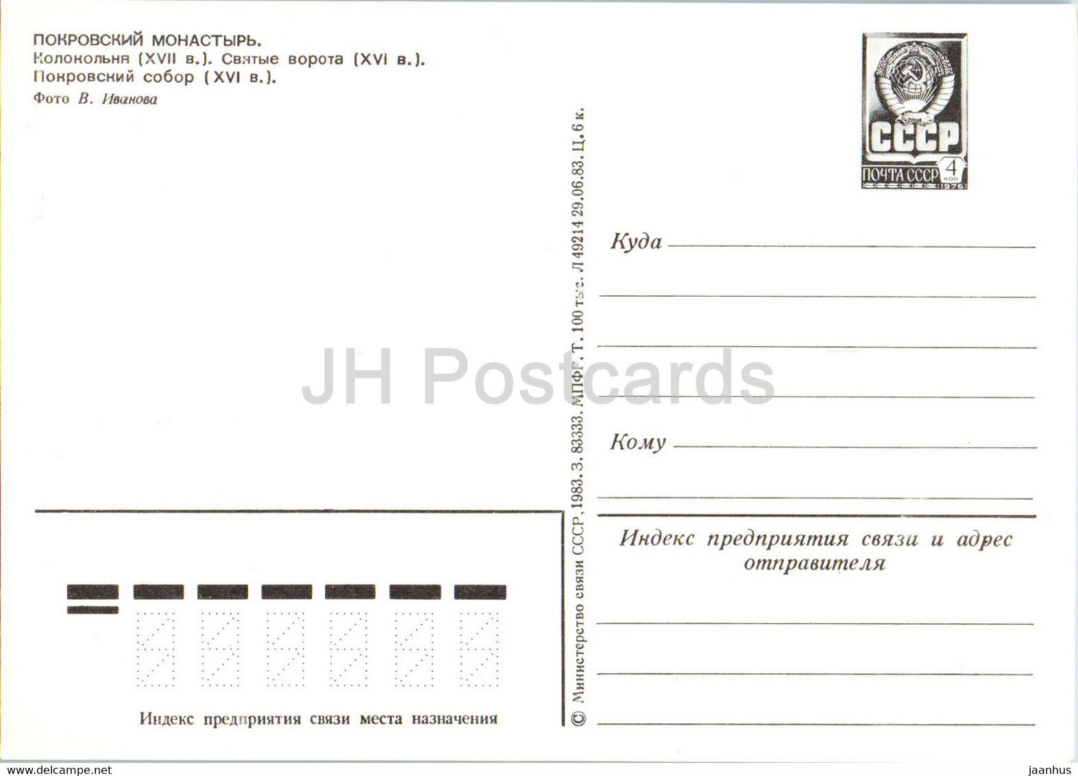 Monastère Pokrovsky - beffroi - Porte Sainte - cathédrale - bus Ikarus - entier postal - 1983 - Russie URSS - inutilisé