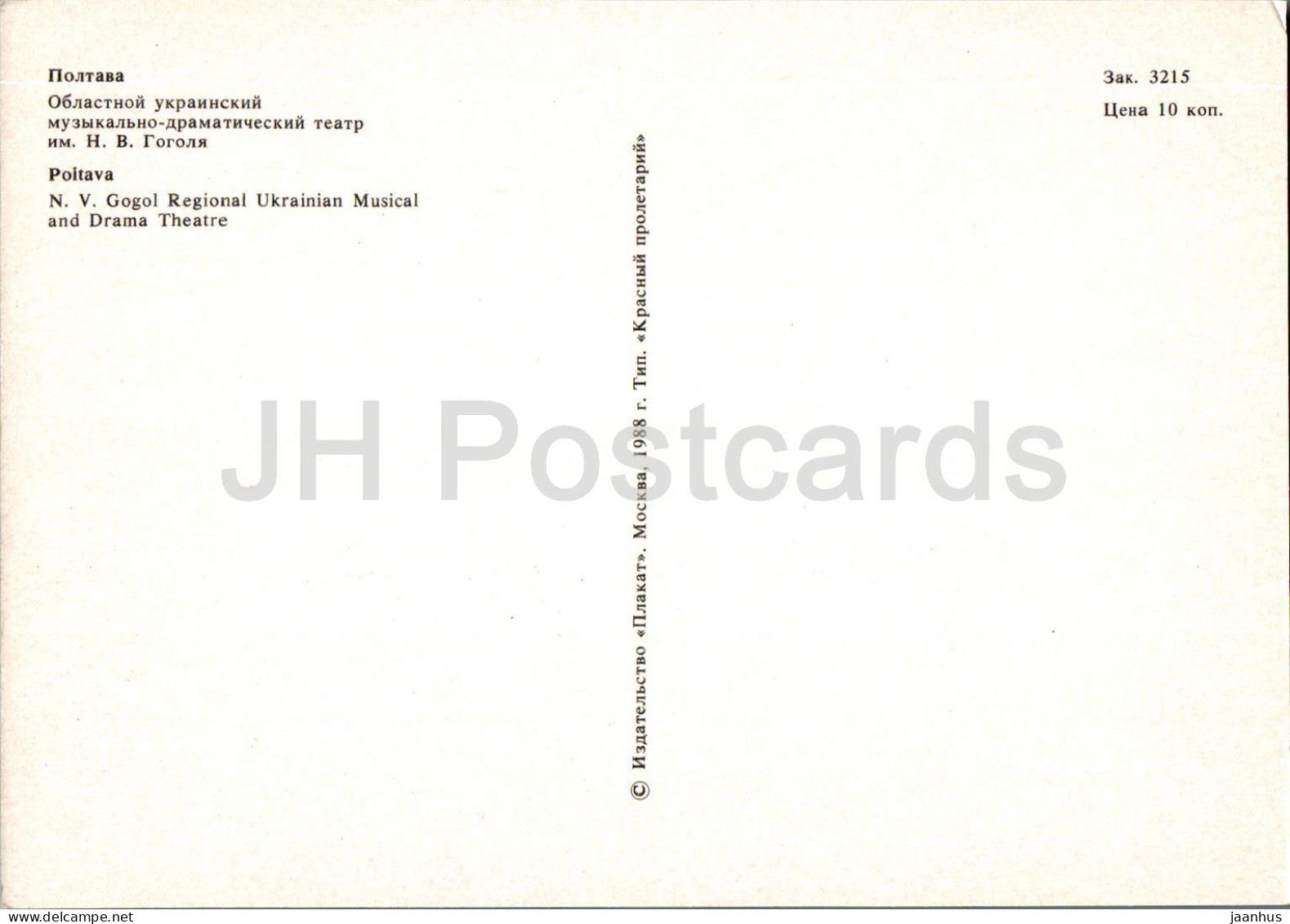 Poltava - Théâtres musicaux et dramatiques régionaux ukrainiens de Gogol - 1988 - Ukraine URSS - inutilisé