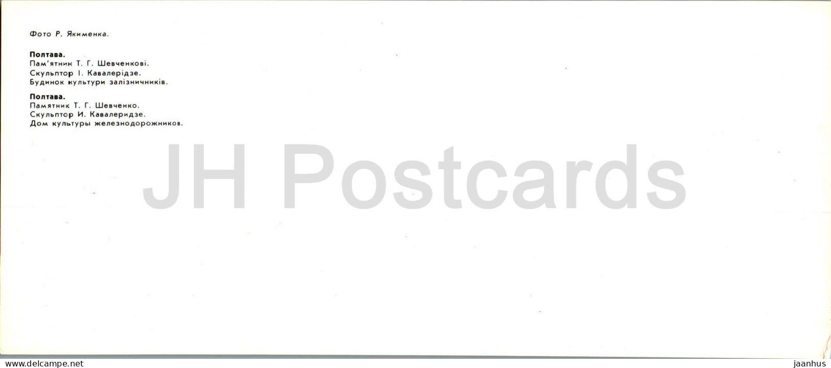 Poltava - monument au poète ukrainien T. Shevchenko - Maison de la culture des cheminots - 1987 - Ukraine URSS - inutilisé
