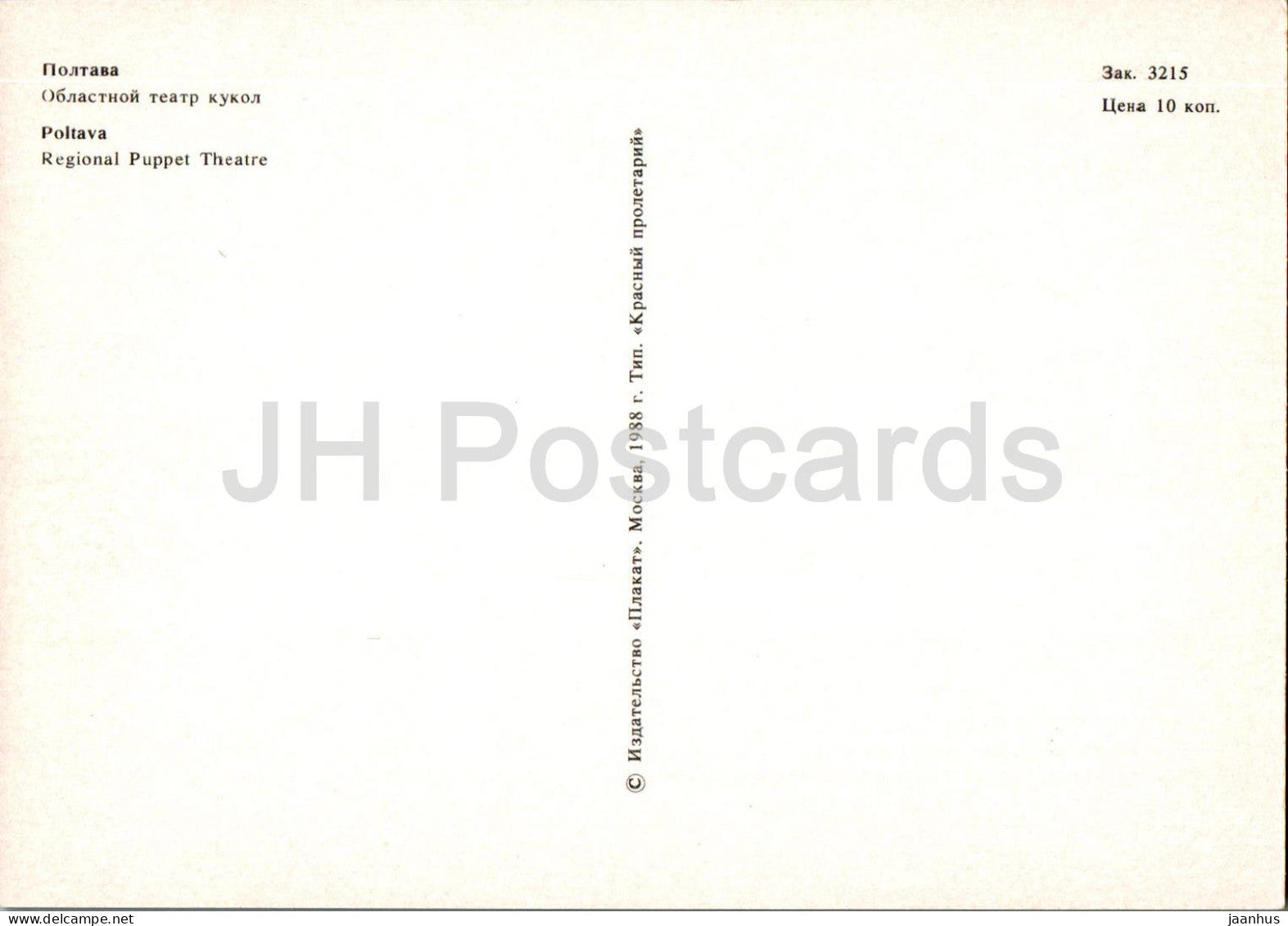 Poltava - Théâtre régional de marionnettes - 1988 - Ukraine URSS - inutilisé