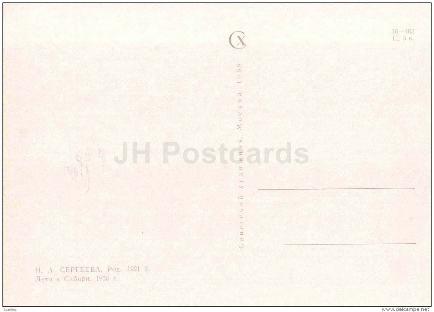 Portrait de Nina Sergeyeva - Été en Sibérie, 1966 - montagnes - Art russe - 1968 - Russie URSS - inutilisé