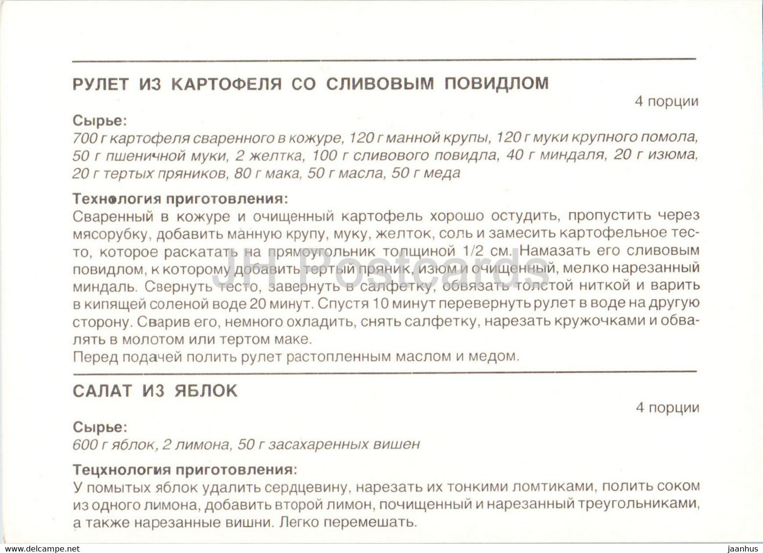 Rouleau de pommes de terre à la marmelade de prunes - Salade de pommes - Plats végétariens - recettes - 1989 - Russie URSS - inutilisé