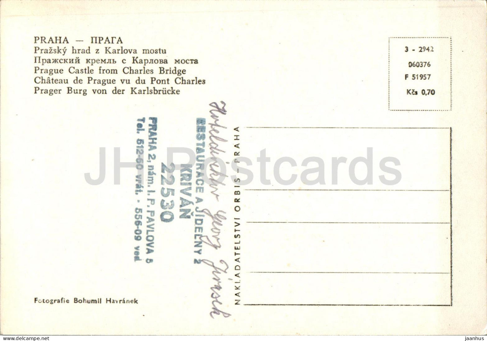 Praha - Prague - Prazsky Hrad z Karlova mostu - Château de Prague depuis le pont Charles République tchèque - Tchécoslovaquie - occasion