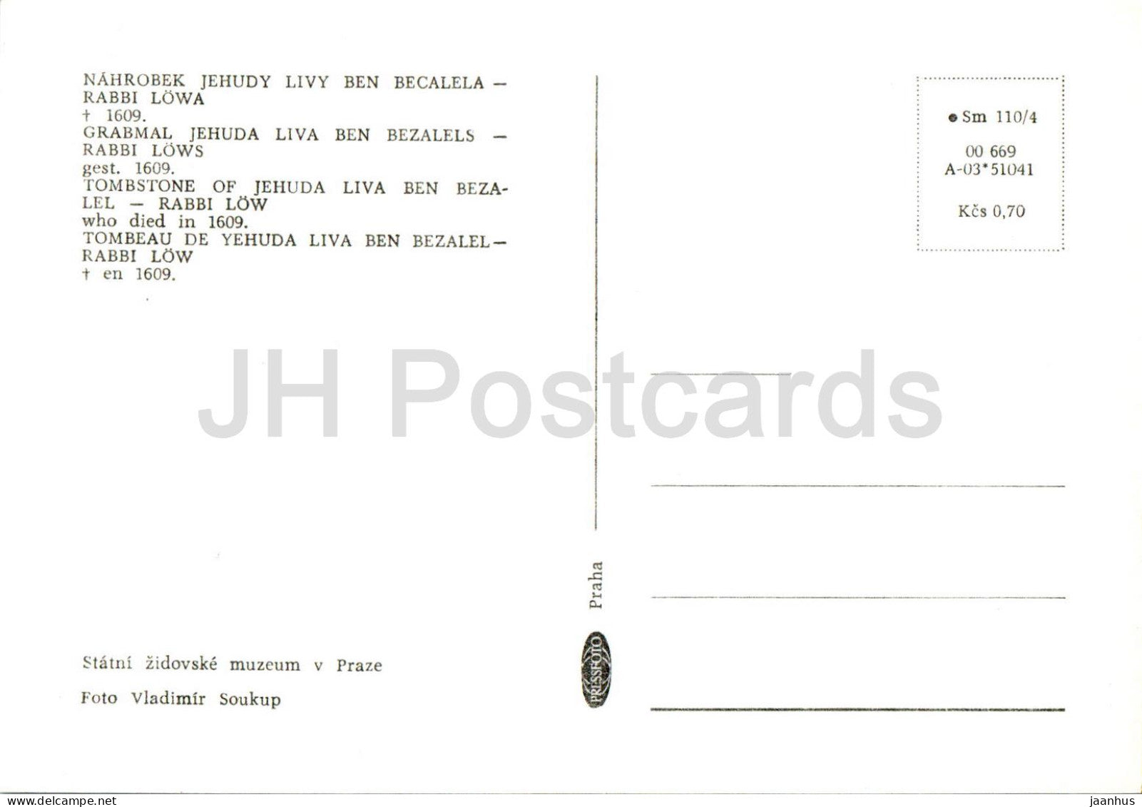 Praha - Prague - Pierre tombale de Jehuda Liva Ben Bezalel - Rabbi Low - République tchèque - Tchécoslovaquie - inutilisé