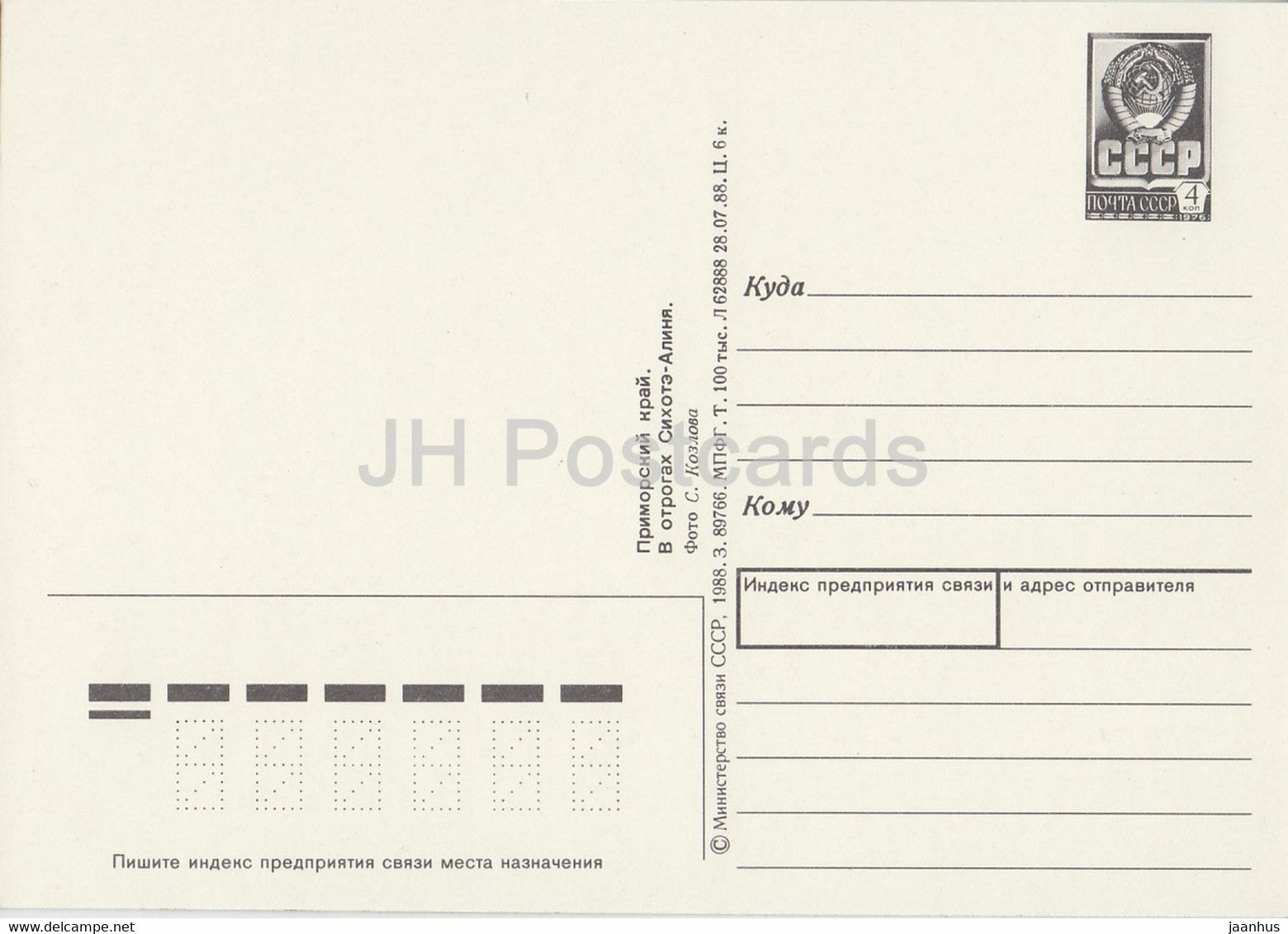 Primorsky Krai - dans les contreforts de Sikhote Alin - entier postal - 1988 - Russie URSS - inutilisé