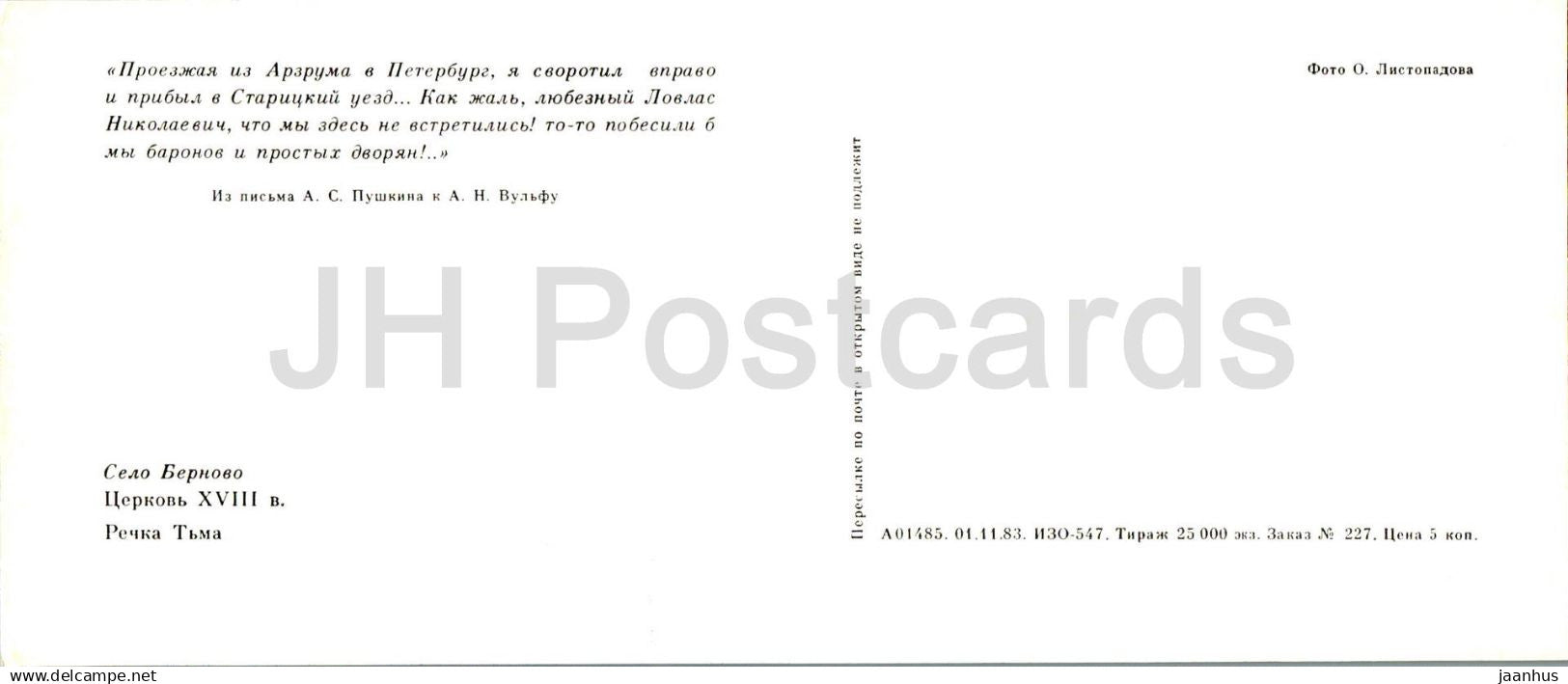 Lieux Pouchkine de la Haute Volga - village de Bernovo - église - rivière Tyma - 1983 - Russie URSS - inutilisé