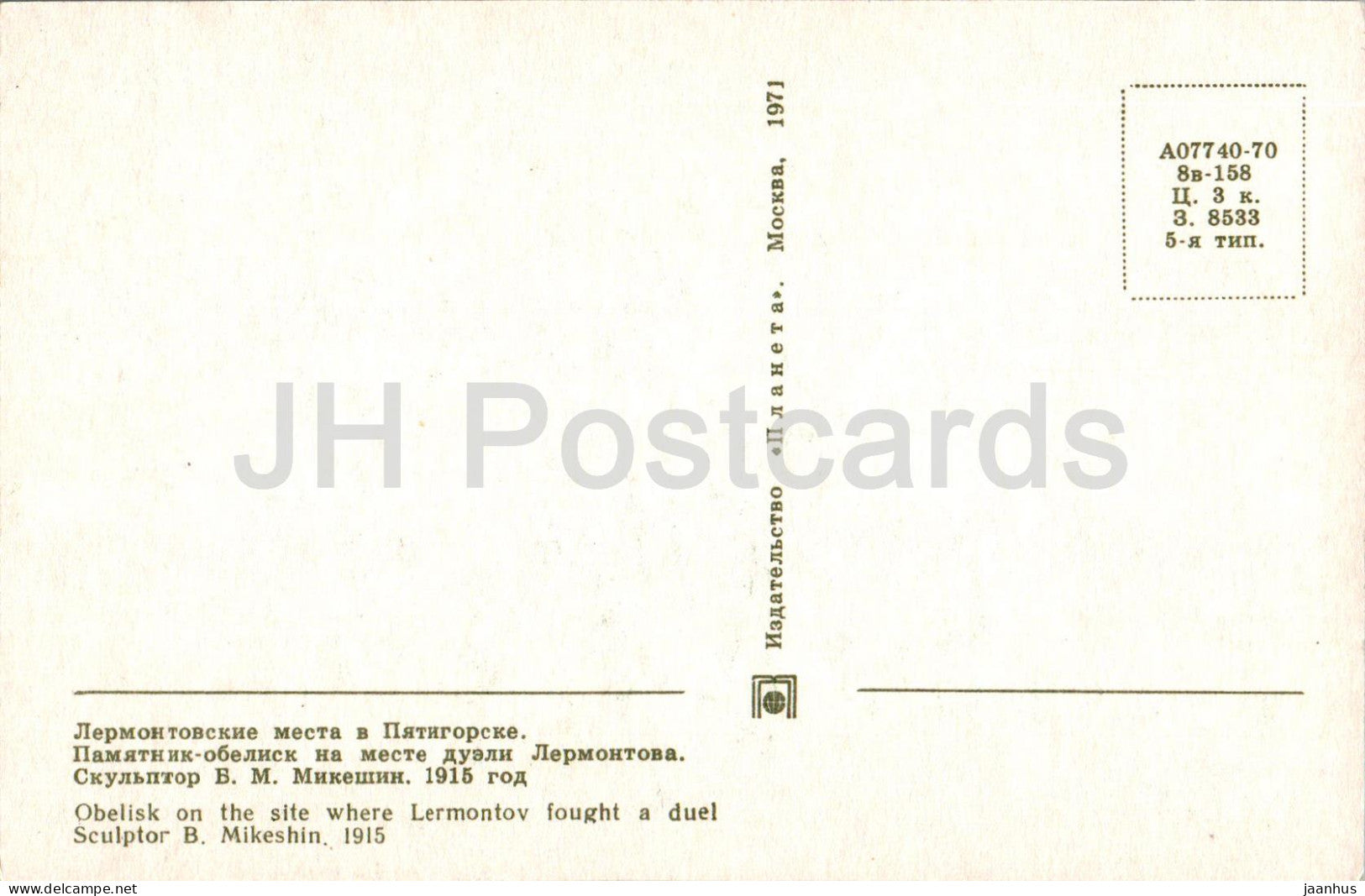 Piatigorsk - Lieux de Lermontov - Obélisque sur le site où Lermontov s'est battu en duel - 1971 - Russie URSS - inutilisé