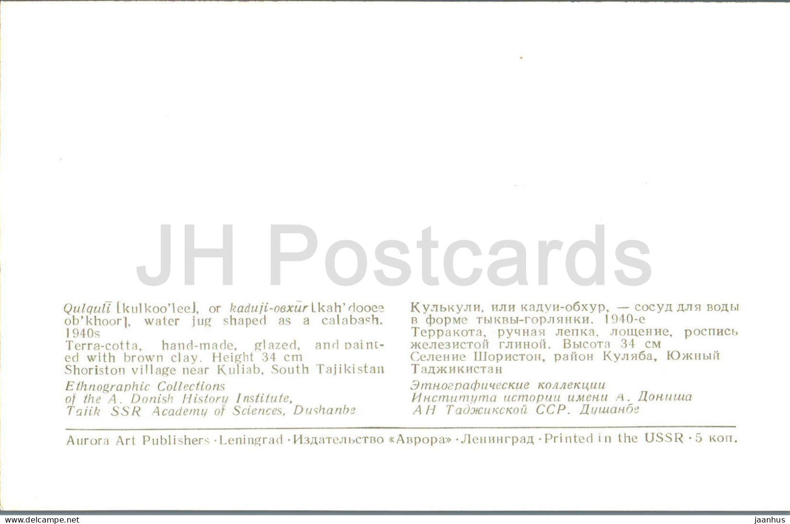 Qulquli - cruche d'eau - art populaire - Art tadjik - Art du Tadjikistan - 1977 - Russie URSS - inutilisé