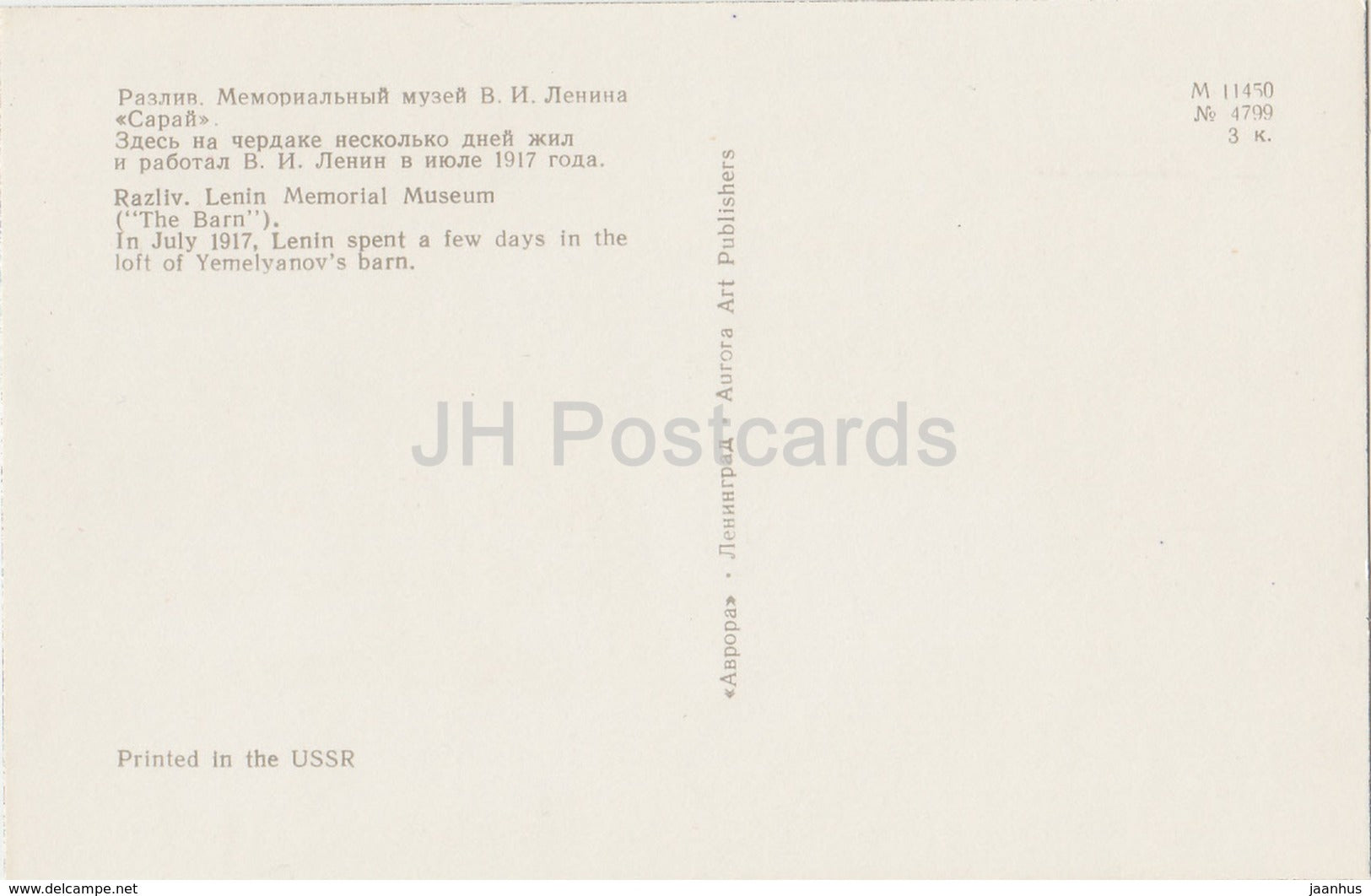 Razliv - La grange d'Emelyanov - intérieur - Mémorial Lénine - 1970 - Russie URSS - inutilisé