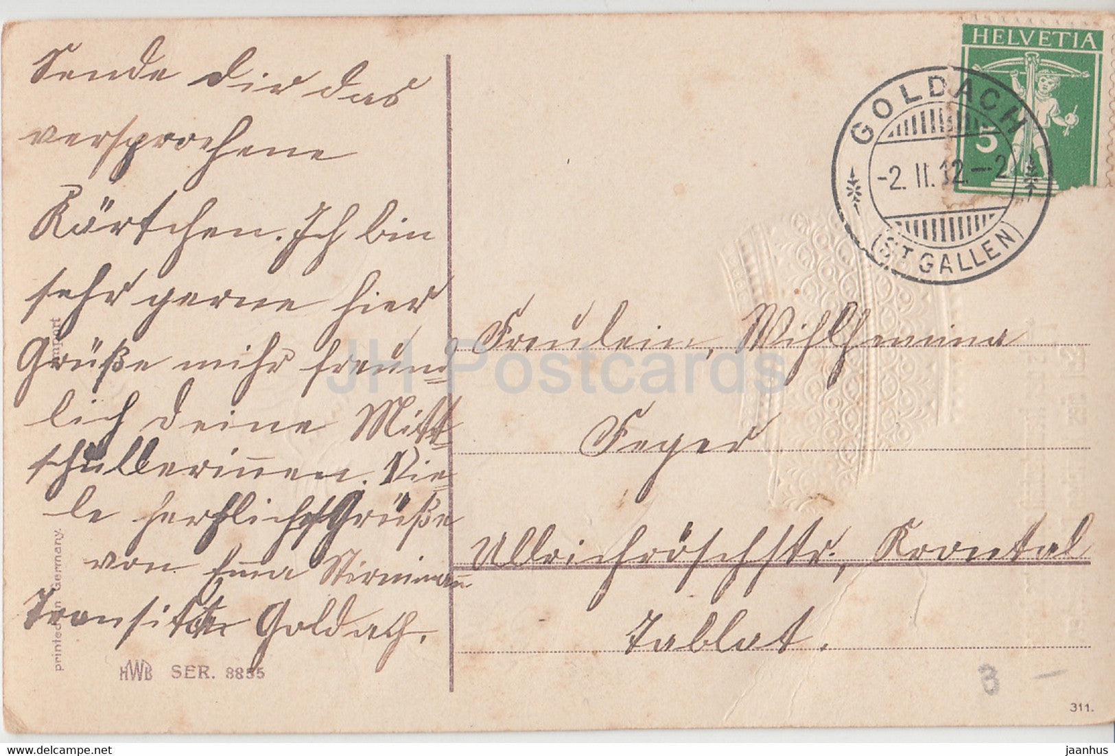 roses rouges dans un vase - fleurs - illustration - HWB SER 3855 - carte postale ancienne - 1912 - Allemagne - utilisé