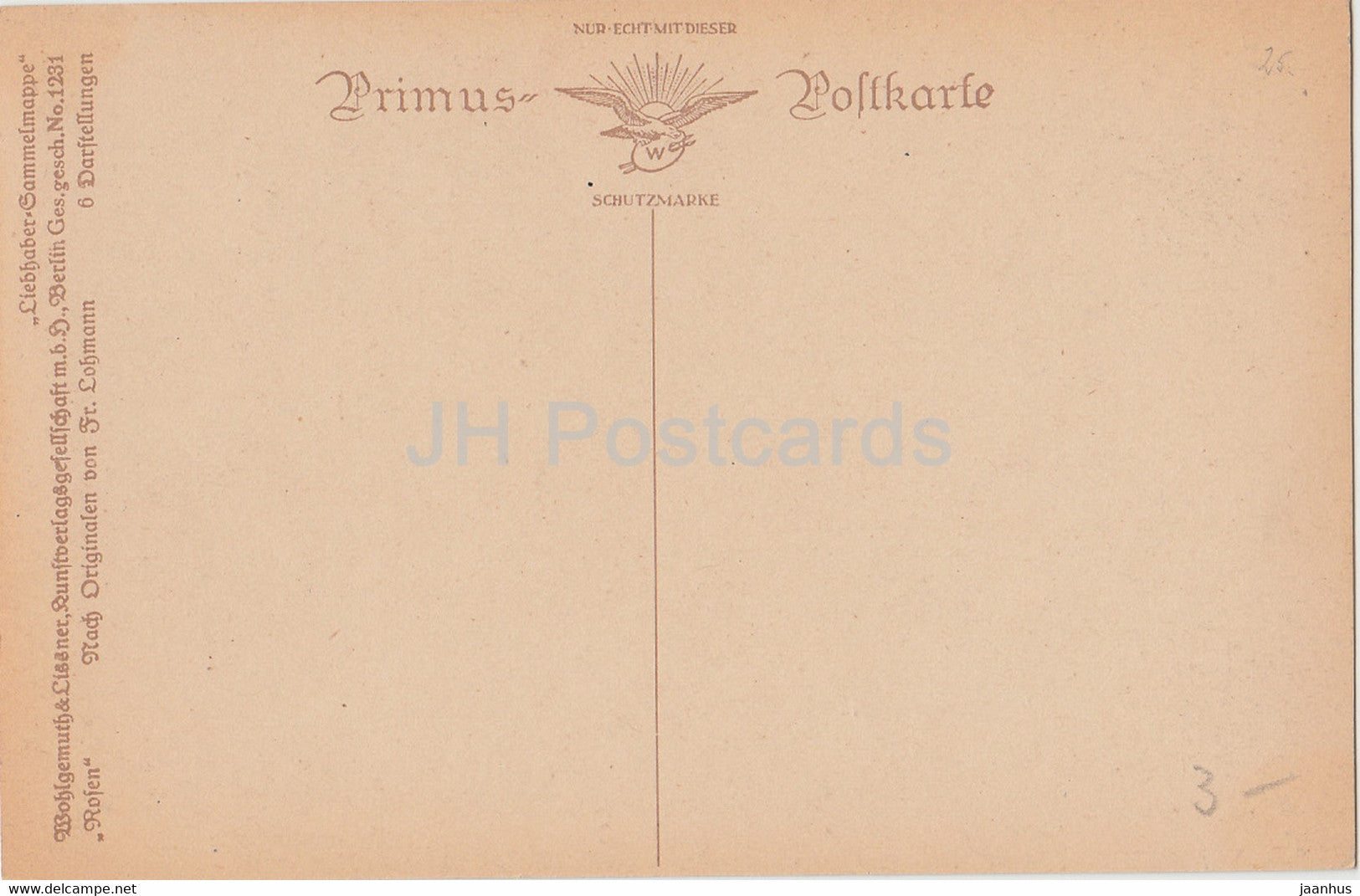 roses rouges - lettre - illustration de Lohmann - Primus 1231 - carte postale ancienne - Allemagne - inutilisée
