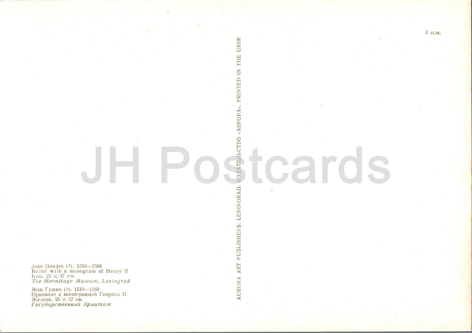 Relief de Jean Goujon - Relief avec un monogramme de l'art français Henri II - Carte grand format - 1975 - Russie URSS - inutilisé