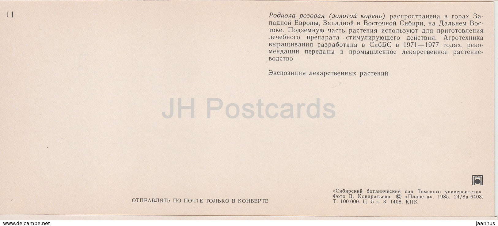 Rhodiola rosea - Jardin botanique sibérien - 1985 - Russie URSS - inutilisé