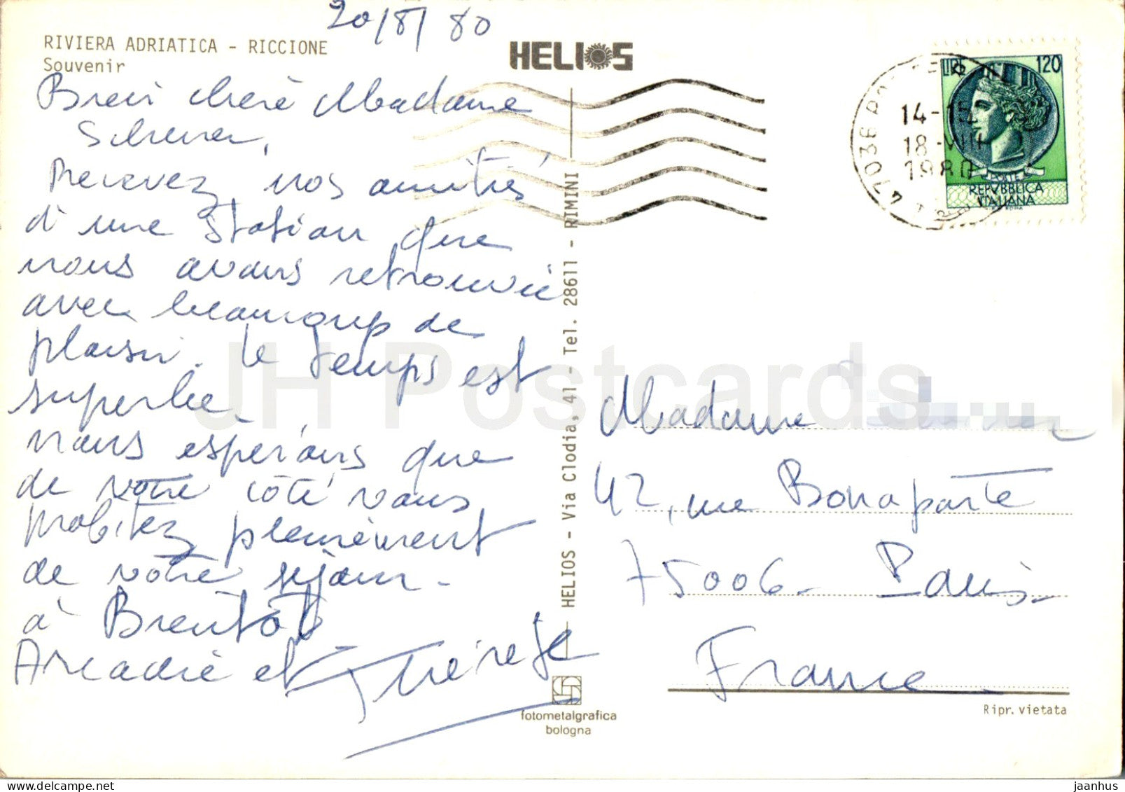 Riccione - Riviera Adriatica - Souvenir - bateau à voile - plage - multiview - 1980 - Italie - utilisé