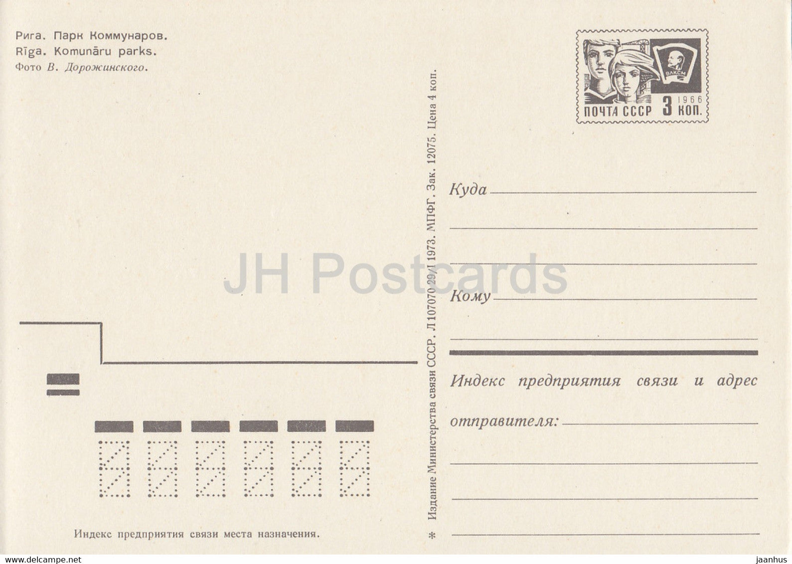 Riga - Parc des Communards - entier postal - 1973 - Lettonie URSS - inutilisé