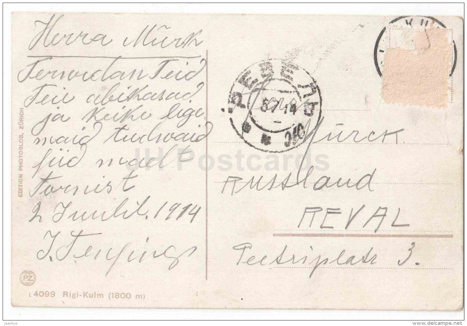 - Année : envoyé de Suisse vers la Russie tsariste Reval 1914