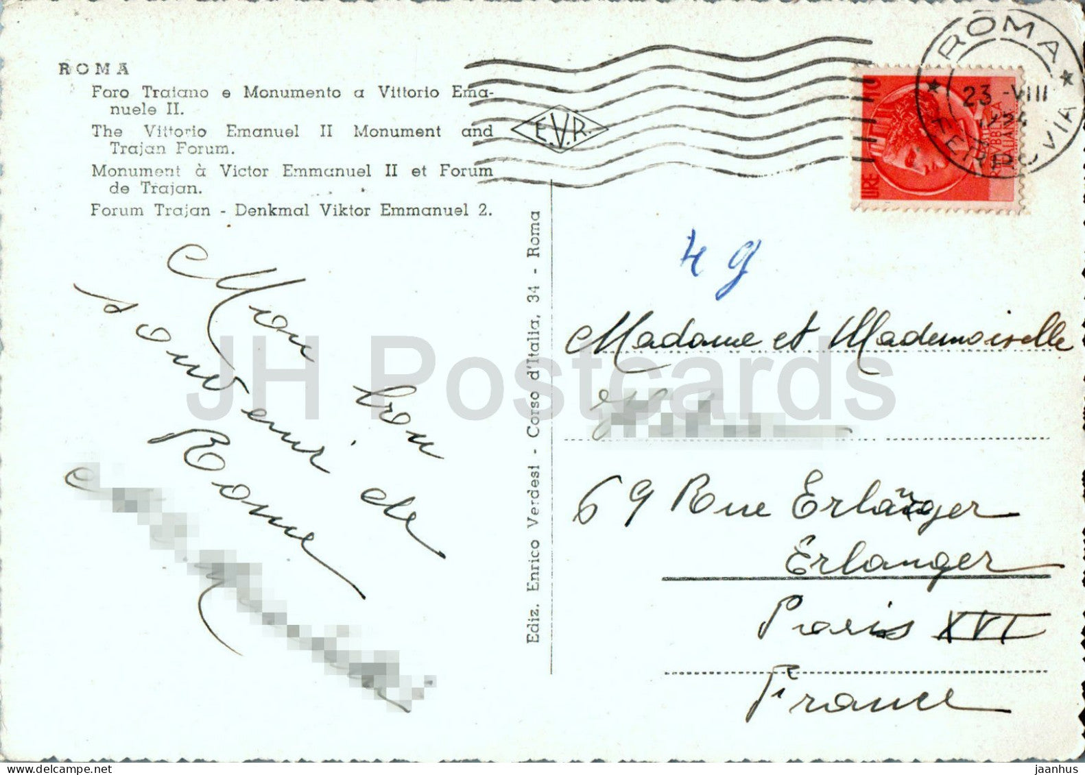 Roma - Rome - Foro Traiano e Monumento a Vittorio Emanuele II - Forum de Trajan - carte postale ancienne - 1954 - Italie - utilisé