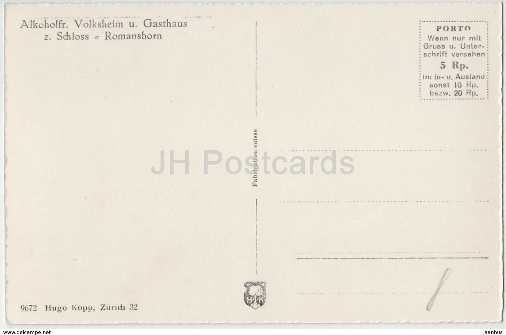 Romanshorn - Alcool. Volksheim u. Gasthaus z. Schloss Romanshorn - château - Suisse - carte postale ancienne - inutilisée