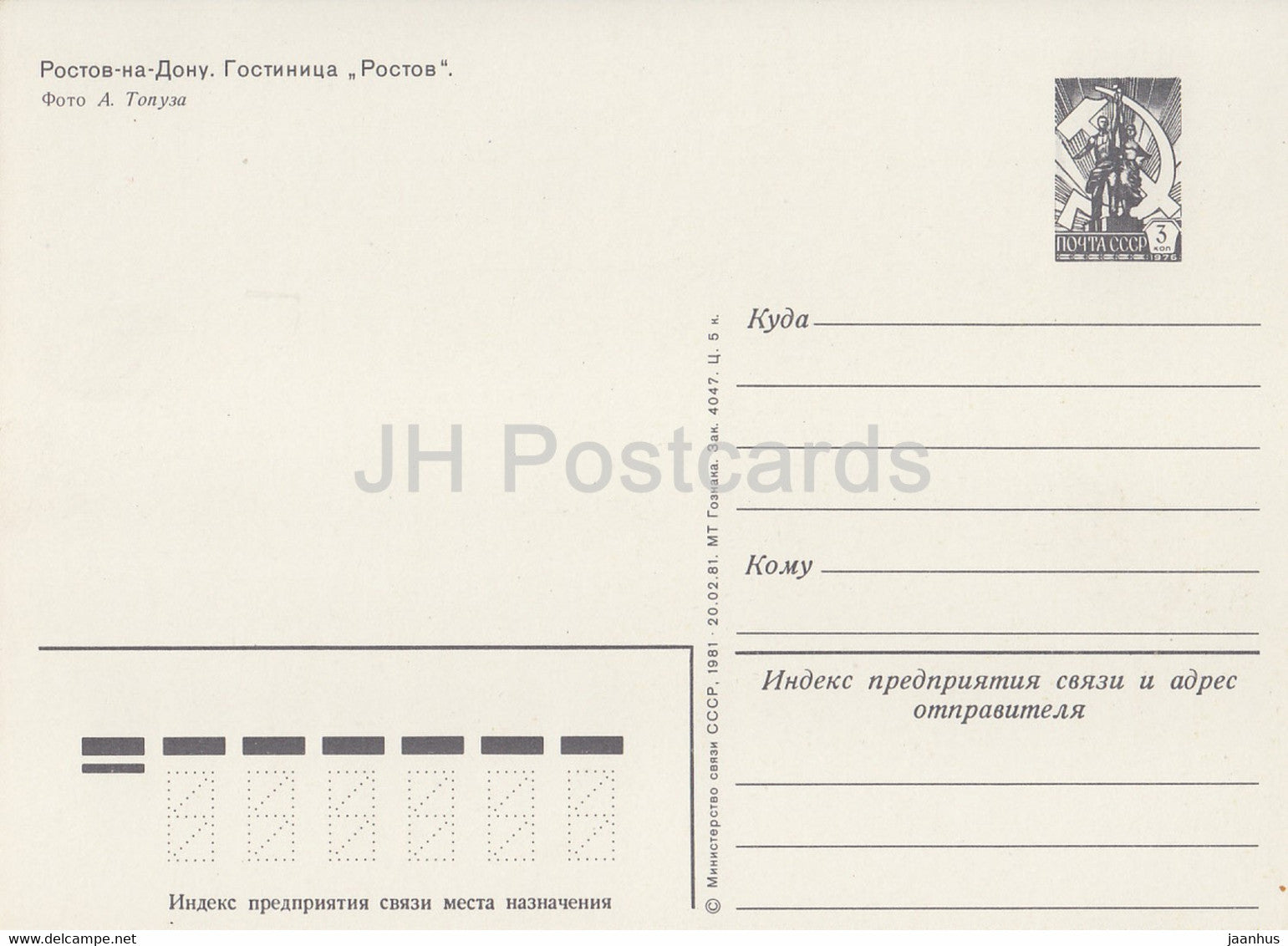 Rostov-sur-le-Don - Rostov na Donu - hôtel Rostov - bus - 1 - entier postal - 1981 - Russie URSS - inutilisé