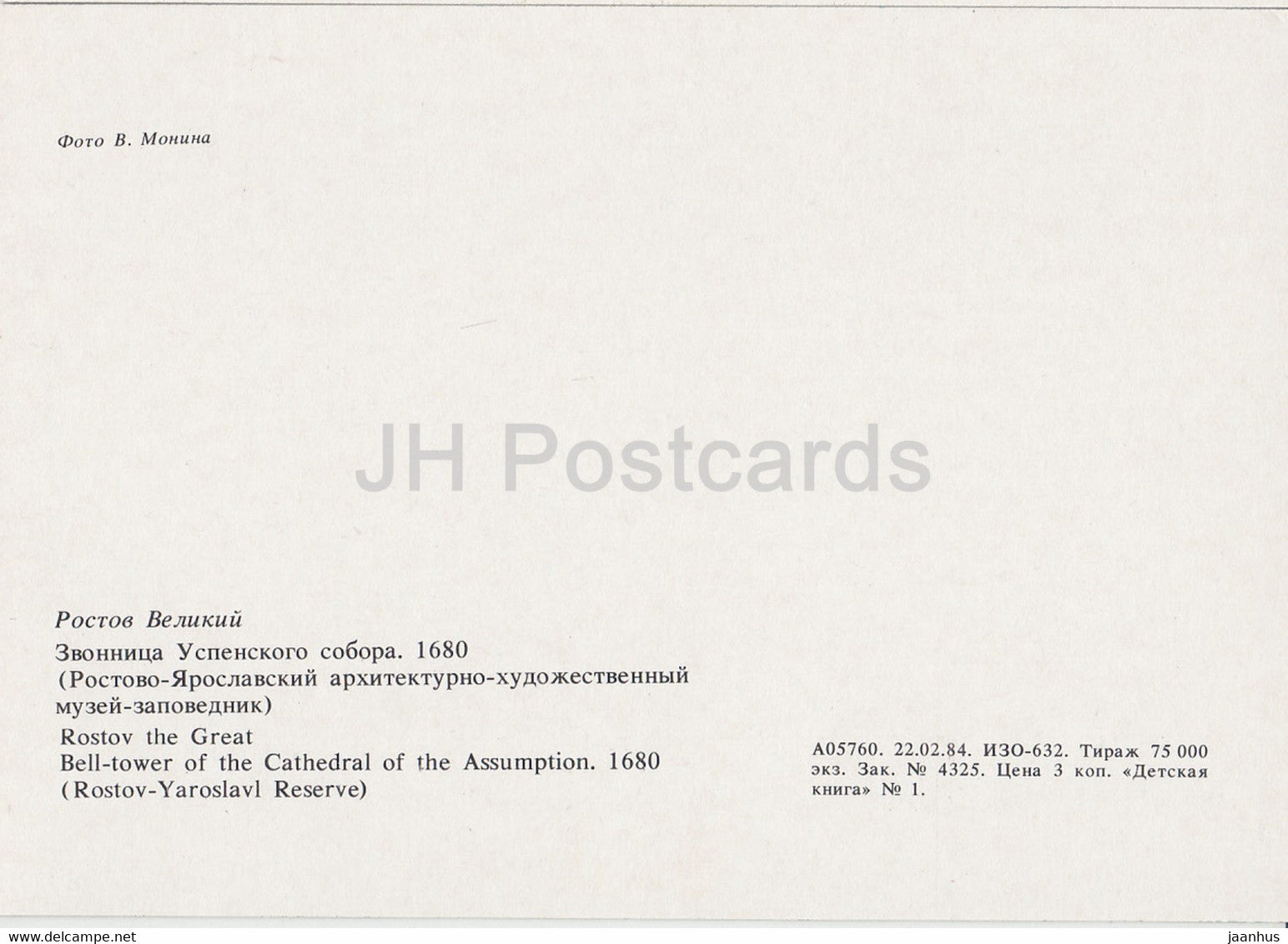 Rostov Veliky - Kremlin - Clocher de l'Assomption - 1984 - Russie URSS - inutilisé