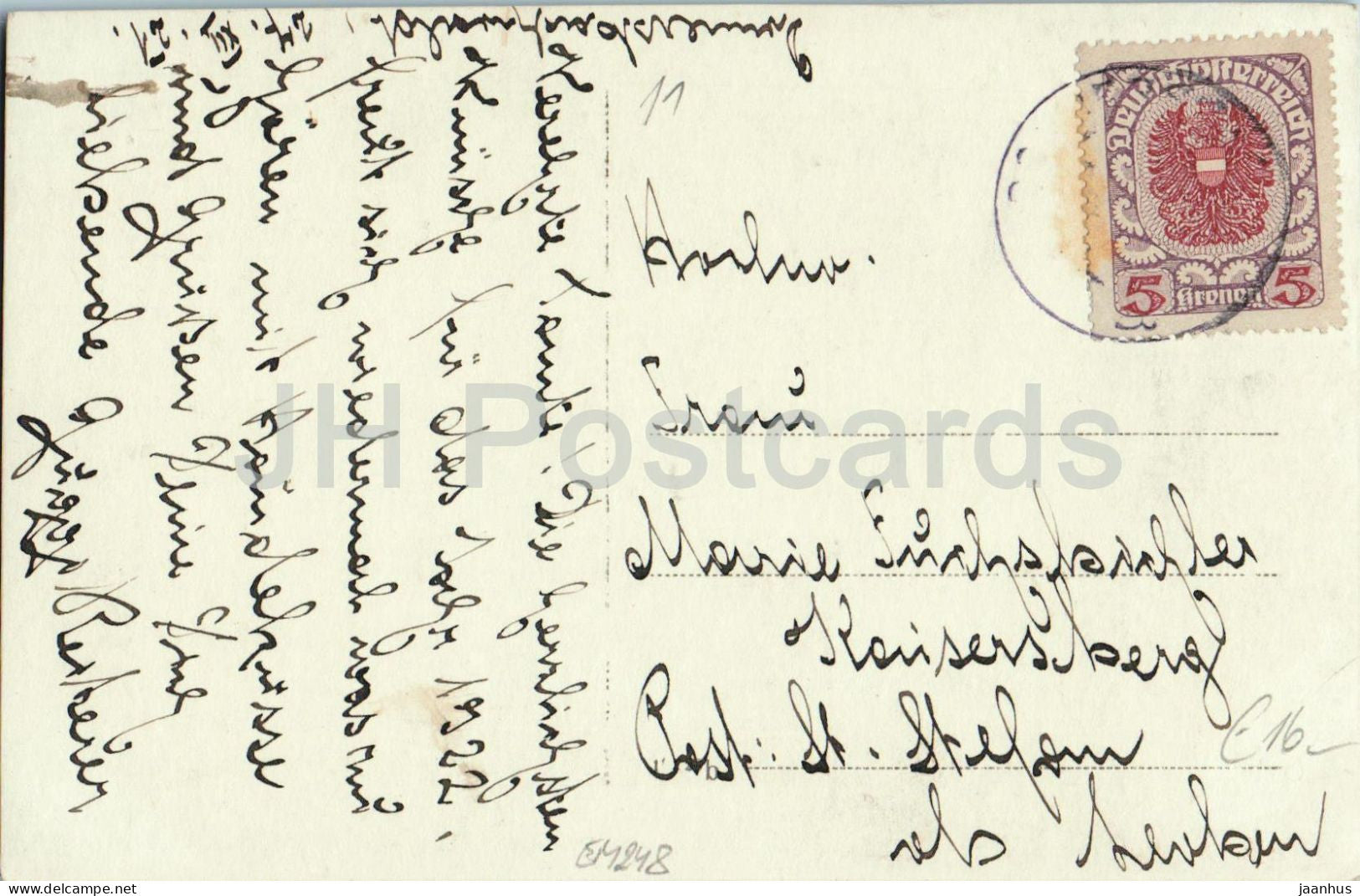 Maison rurale avec étage supérieur en bois - portrait de famille devant - photo - carte postale ancienne - 1922 - Autriche - d'occasion