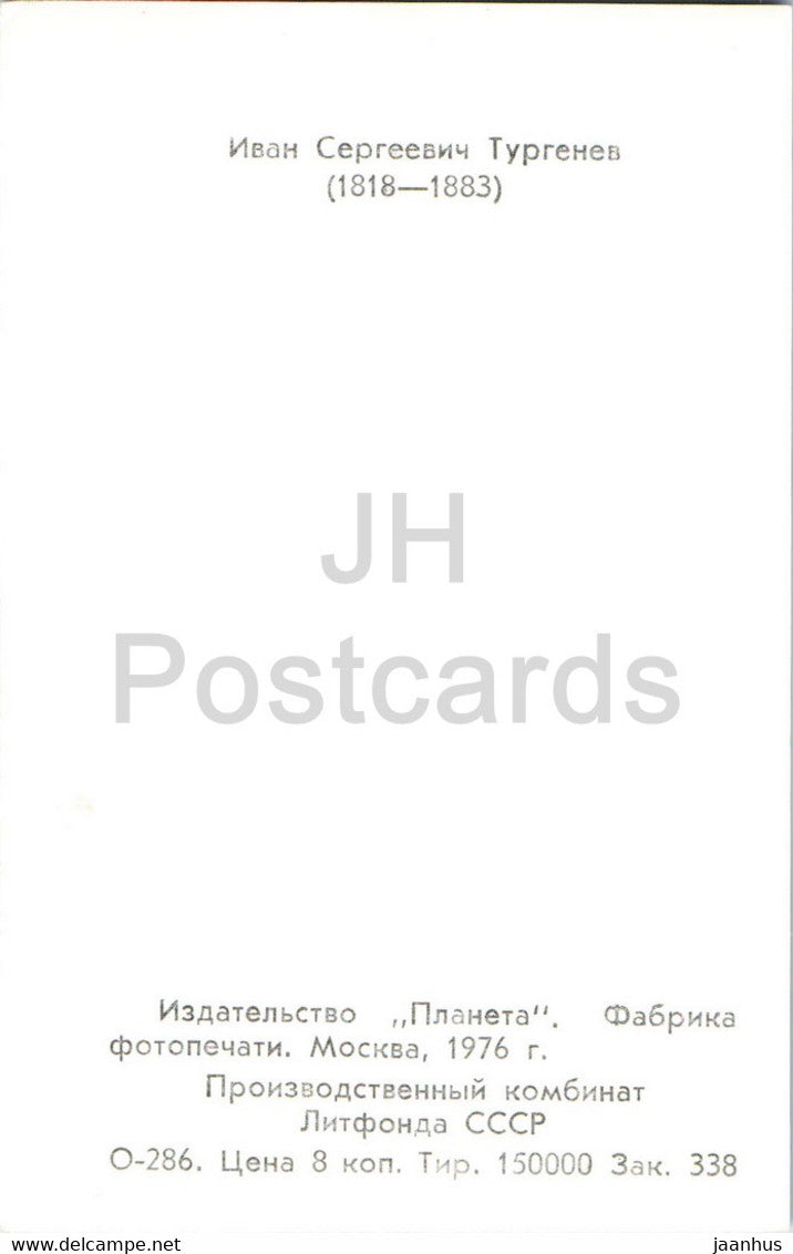 Écrivain russe Ivan Tourgueniev - personnages célèbres - 1976 - Russie URSS - inutilisé