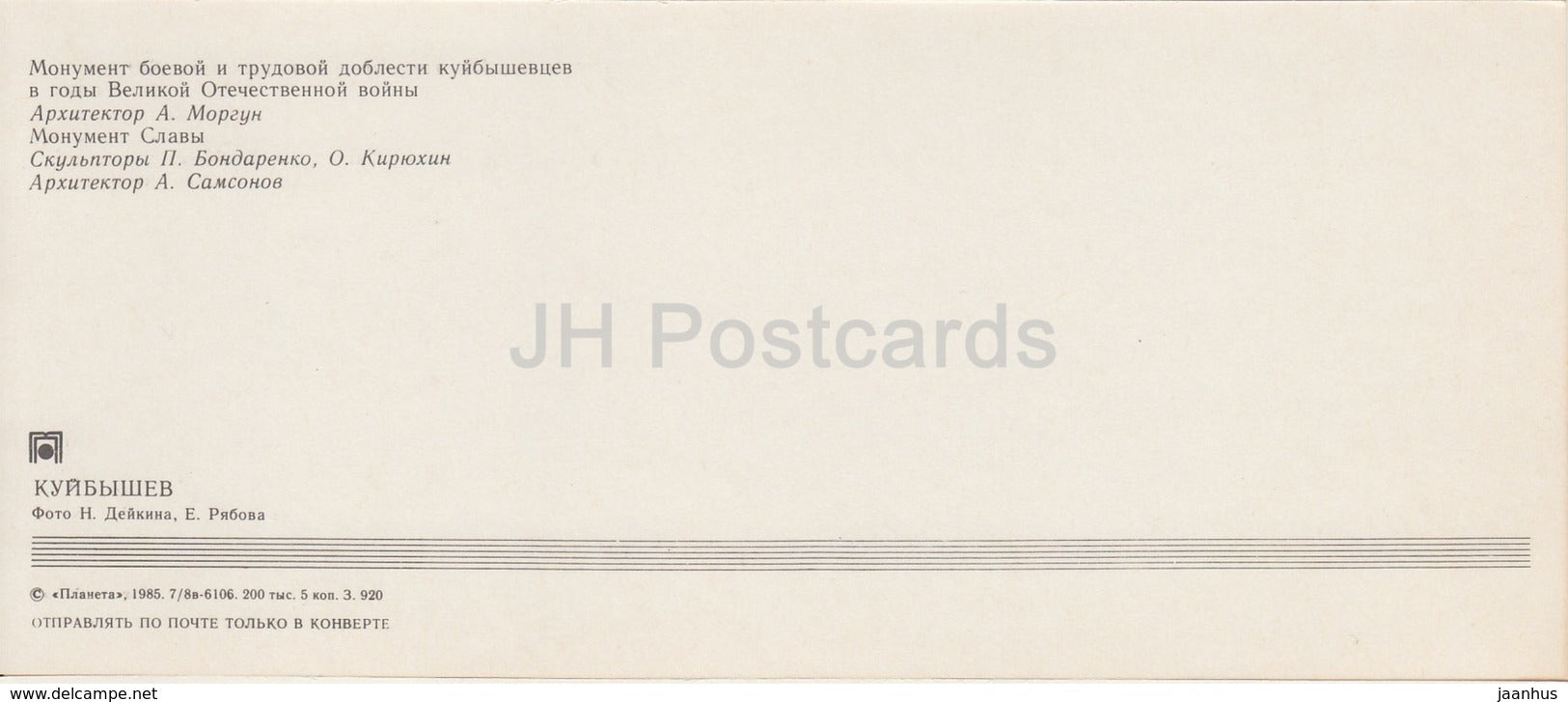 Samara - monument de la valeur militaire et ouvrière pendant la Seconde Guerre mondiale - avion - Kuybyshev - 1985 - Russie URSS - inutilisé