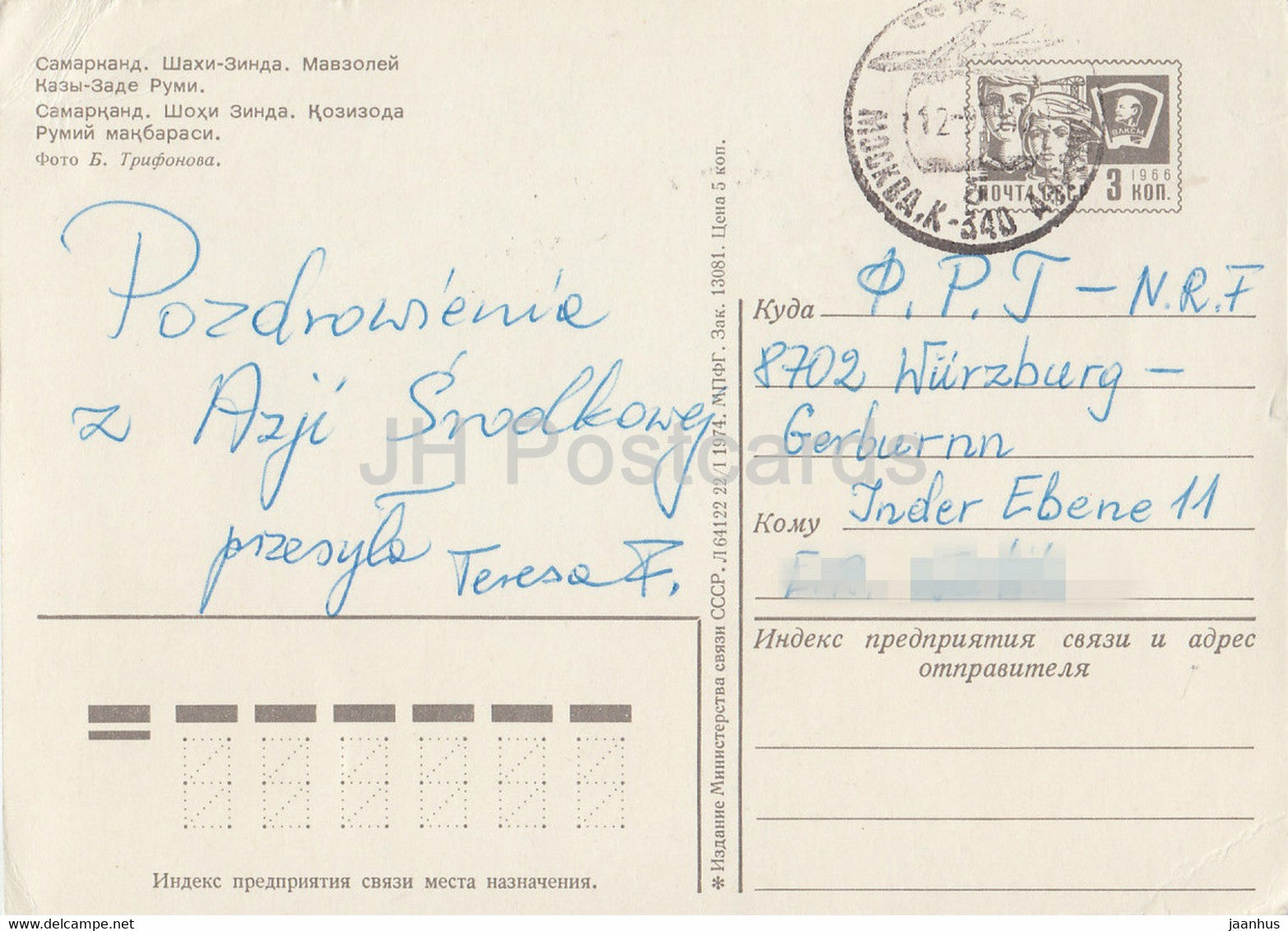 Samarkand - Shah-i-Zinda - Mausolée Kazy Zadeh Roumi - entier postal - 1974 - Ouzbékistan URSS - utilisé