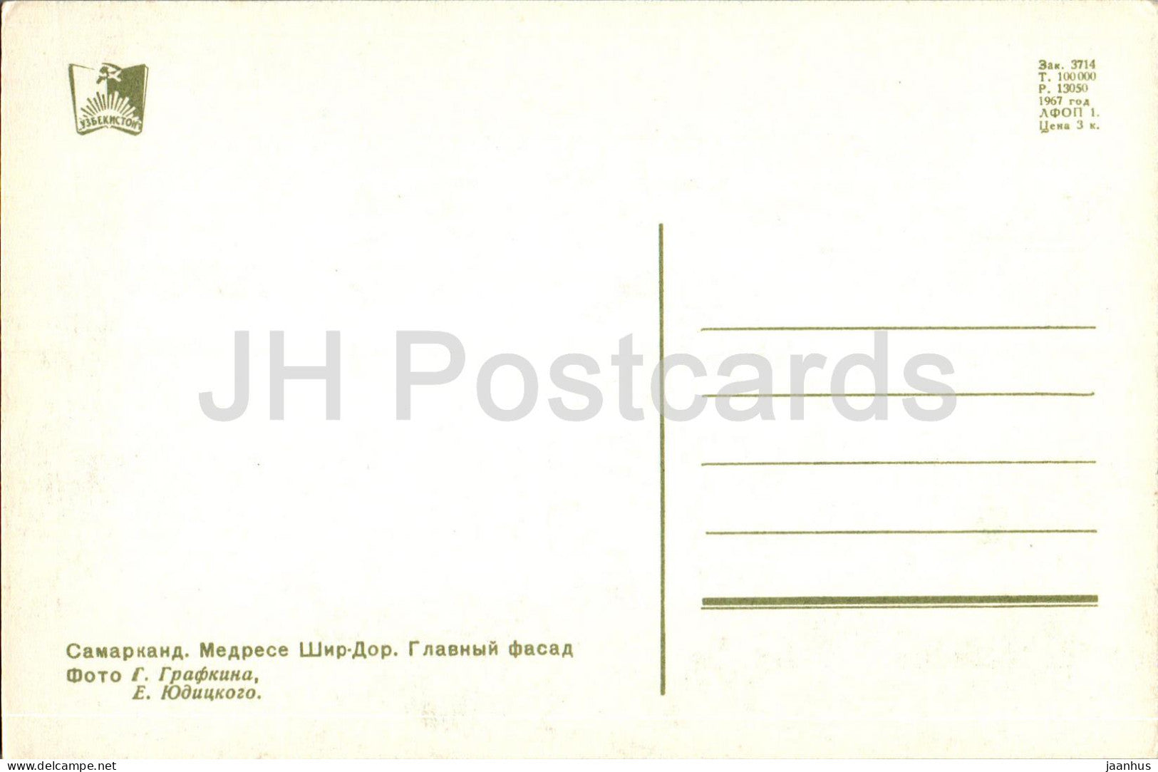 Samarkand - Sher-Dor Madrasa - façade principale - monuments architecturaux de l'Ouzbékistan - 1967 - Ouzbékistan URSS - inutilisé