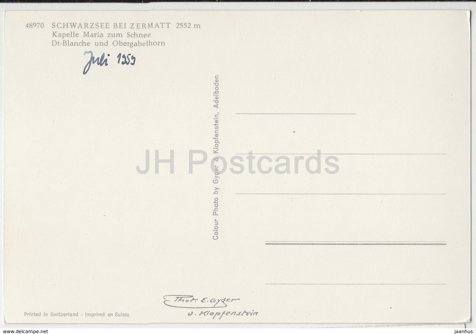 Schwarzsee bei Zermatt - Kapelle Maria zum Schnee - Dt-Blanche und Obergabelhorn - 48970 - Suisse - 1959 - utilisé