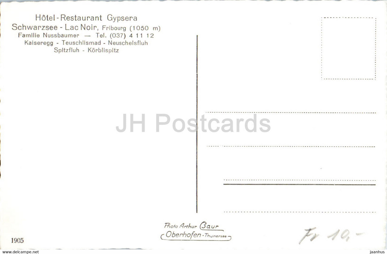 Schwarzsee - Lac Noir - Hôtel Restaurant Gypsera - 1905 - carte postale ancienne - Suisse - inutilisée