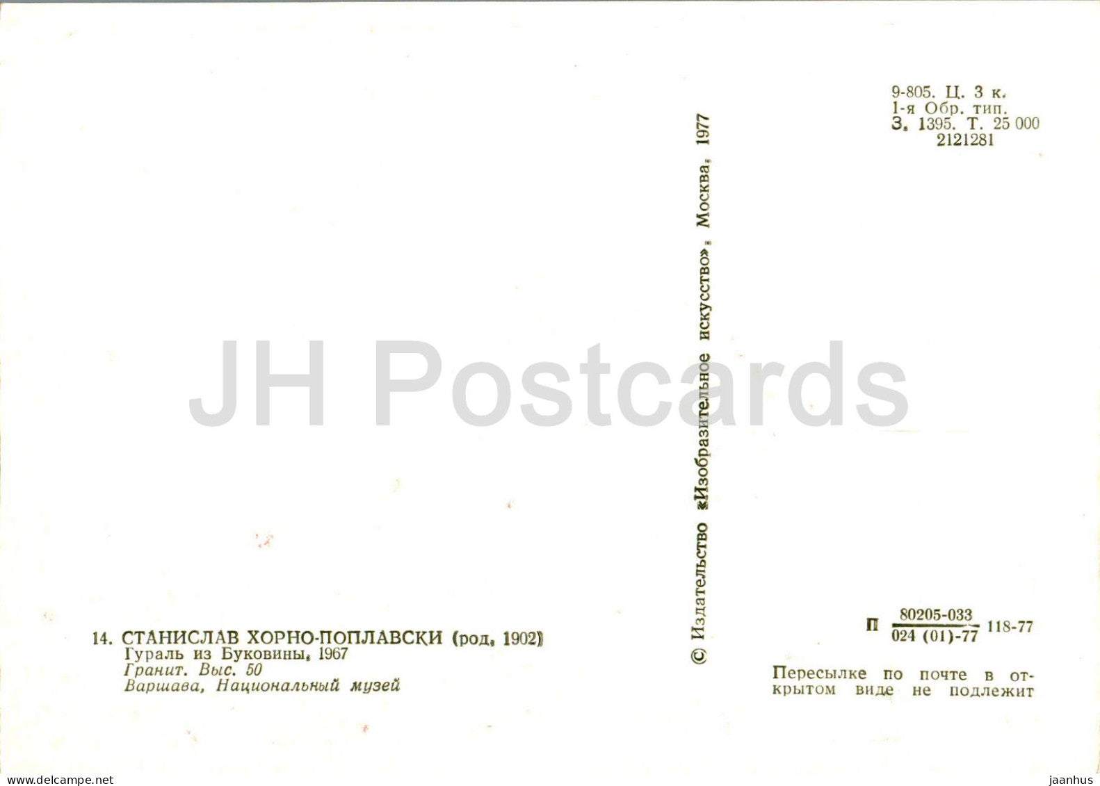 sculpture d'Alfons Karny - Gural de Bucovine - Art polonais - 1977 - Russie URSS - inutilisé