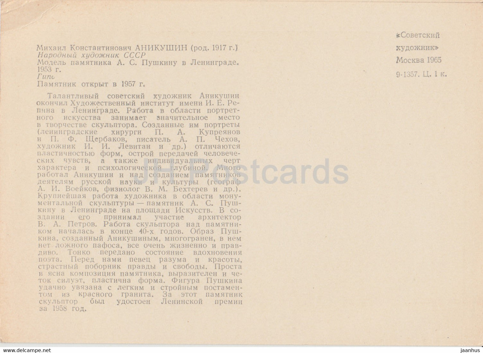 sculpture de Konstantin Anikushin - monument au poète russe Pouchkine - Art russe - 1965 - Russie URSS - inutilisé