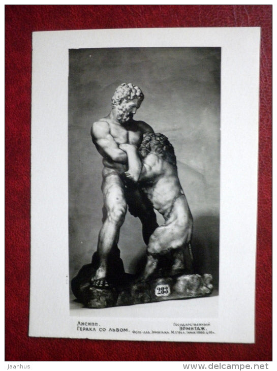 sculpture de Lysippe - Hercule avec un lion - art grec ancien - carte photo - inutilisé