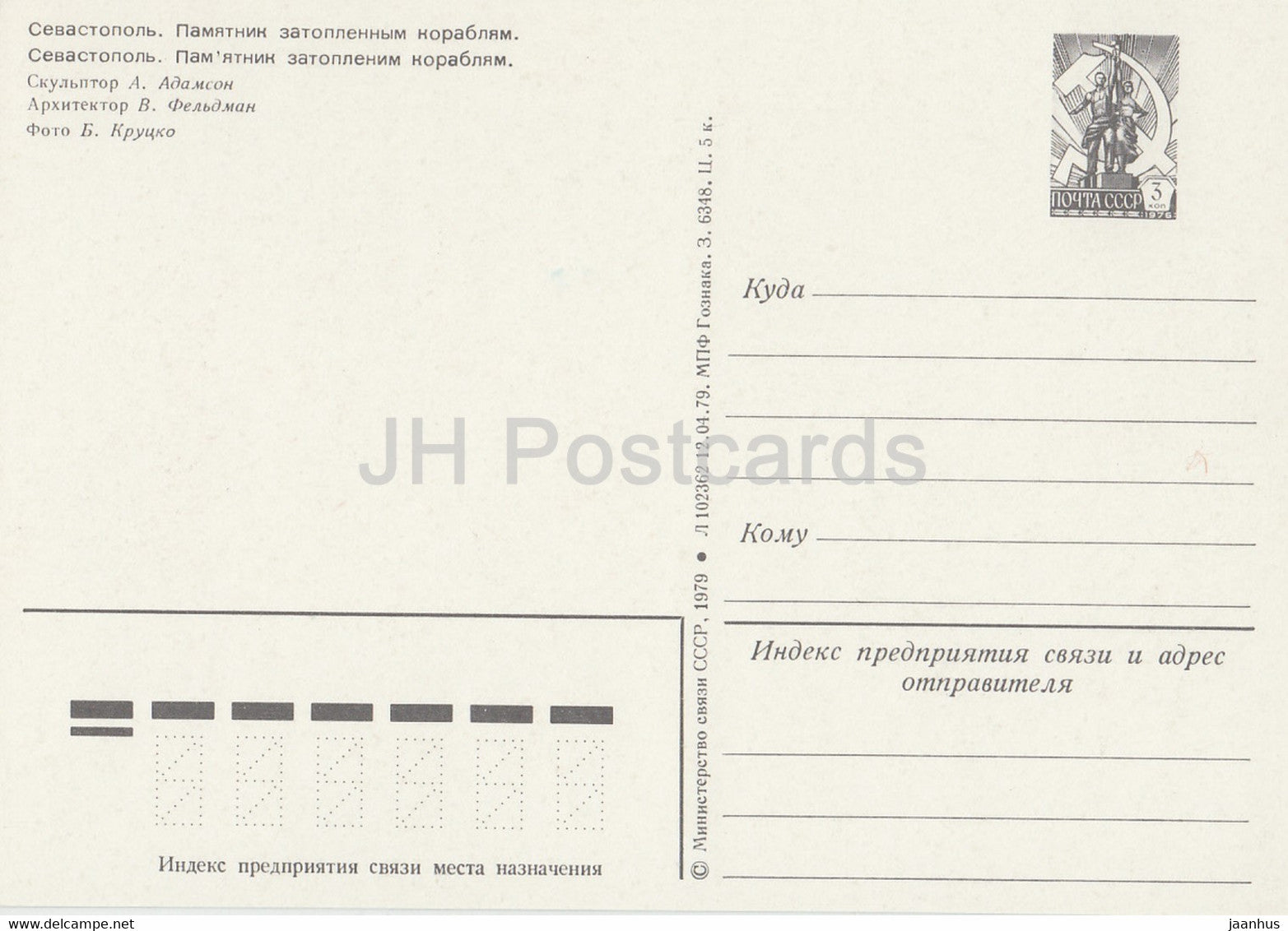 Sébastopol - monument aux navires coulés - Crimée - entier postal - 1979 - Ukraine URSS - inutilisé