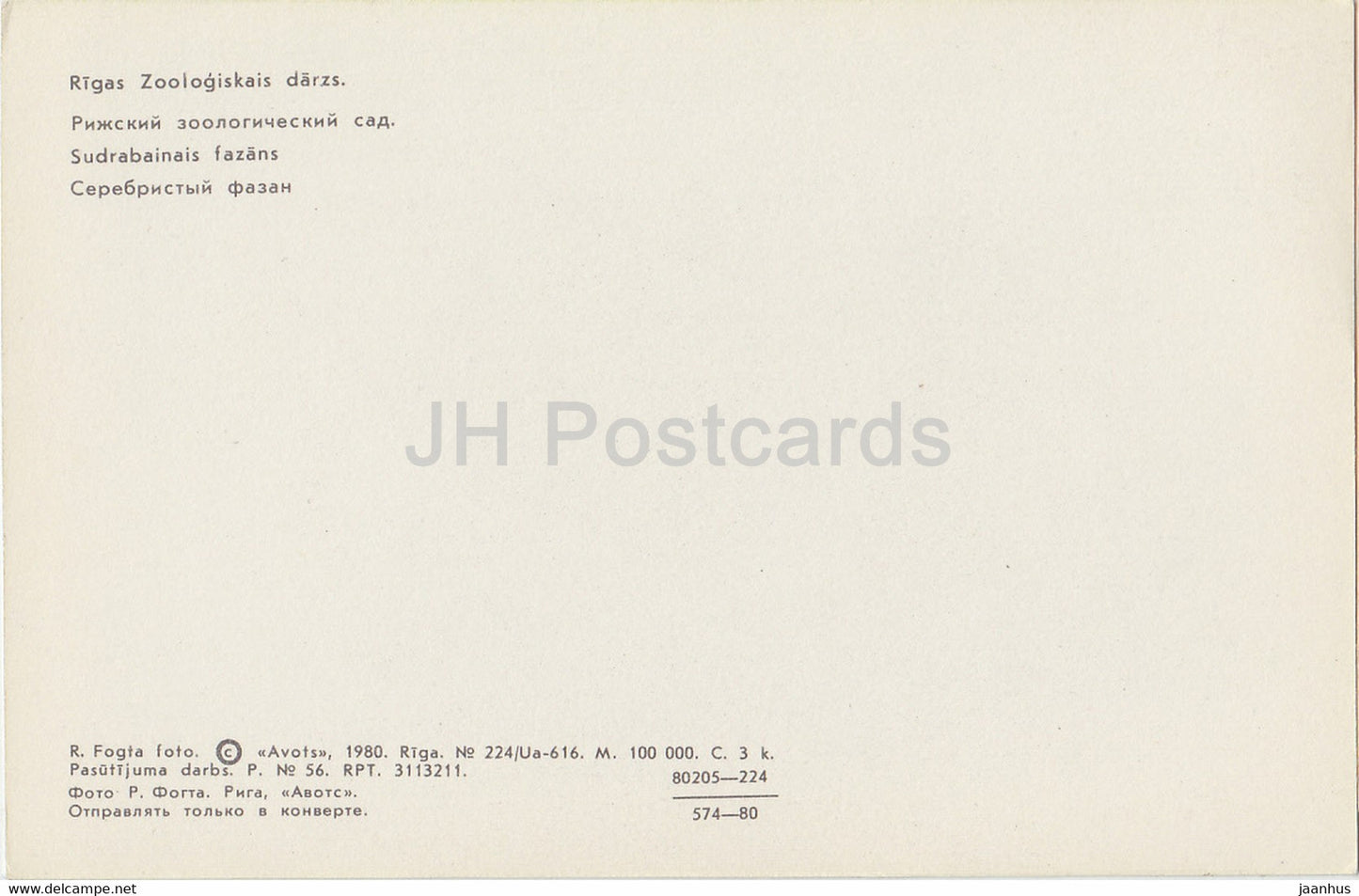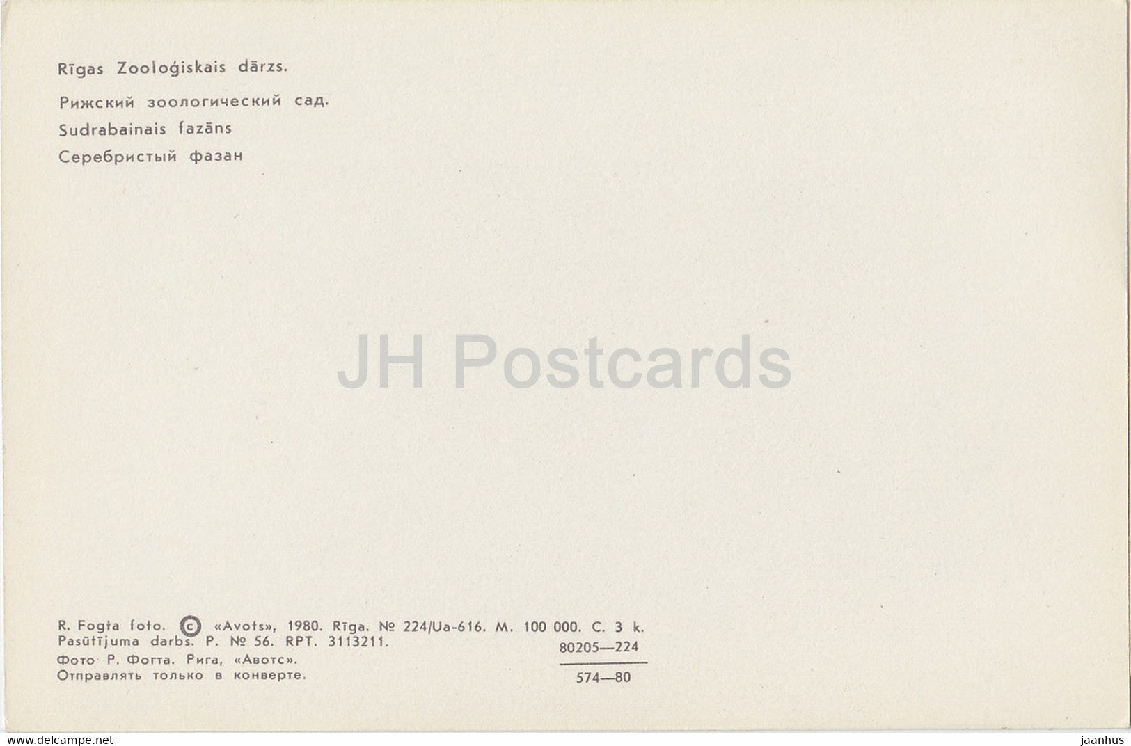 Faisan argenté - Lophura nycthemera - oiseaux - Zoo de Riga - 1980 - Lettonie URSS - inutilisé