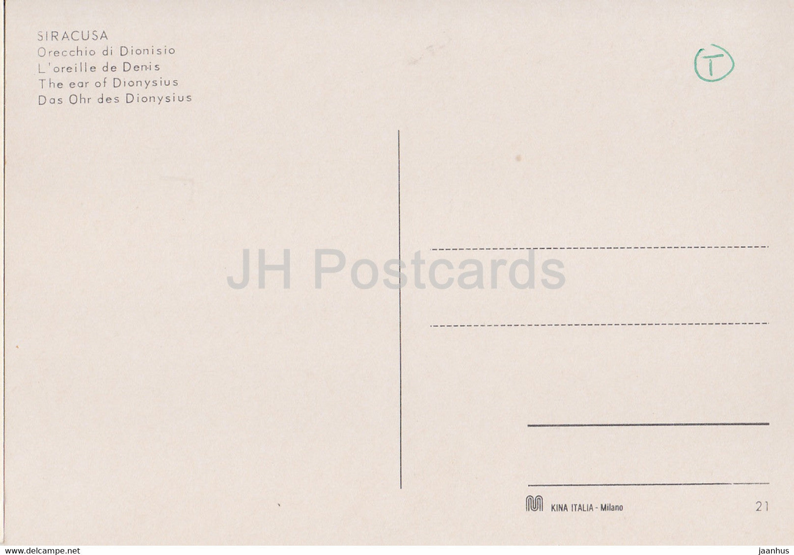 Syracuse - Orecchio di Dionisio - L'oreille de Dionysios - Italie - inutilisé