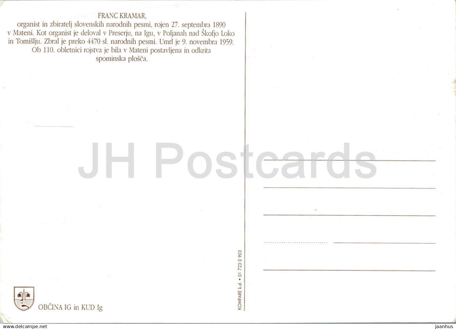 Compositeur slovène Franc Kramar - Partition - Personnages célèbres - Slovénie - non utilisé