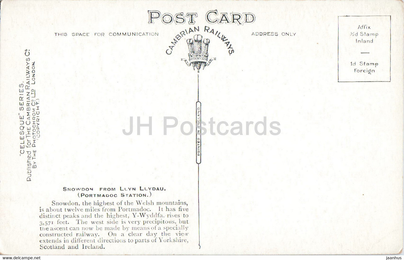 Snowdon de Llyn Llydau - Portmadoc Station - Celesque Series - carte postale ancienne - Pays de Galles - Royaume-Uni - inutilisé