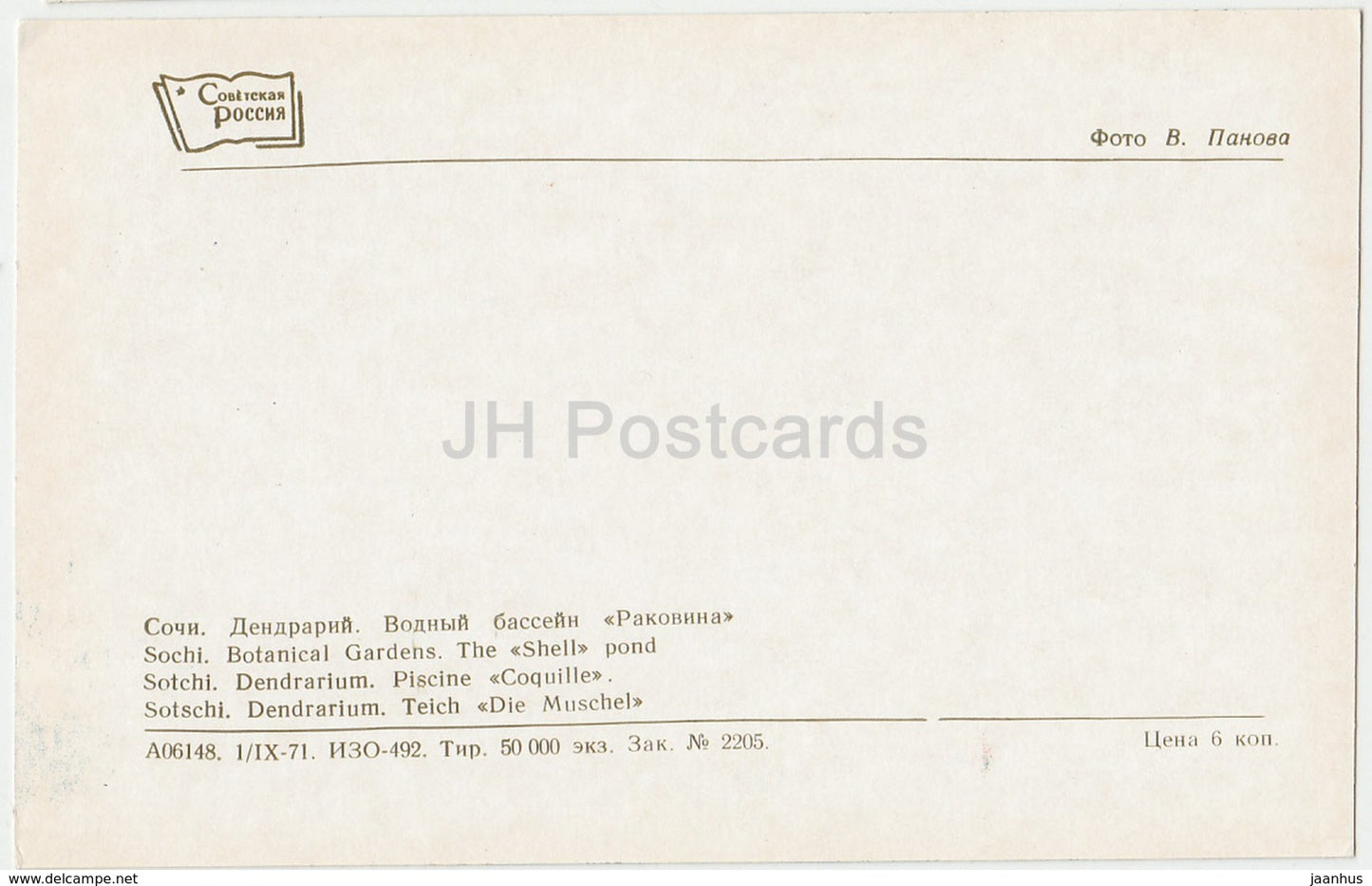 Sotchi - Dendrarium - The Shell Pond - 1971 - Russie URSS - inutilisé