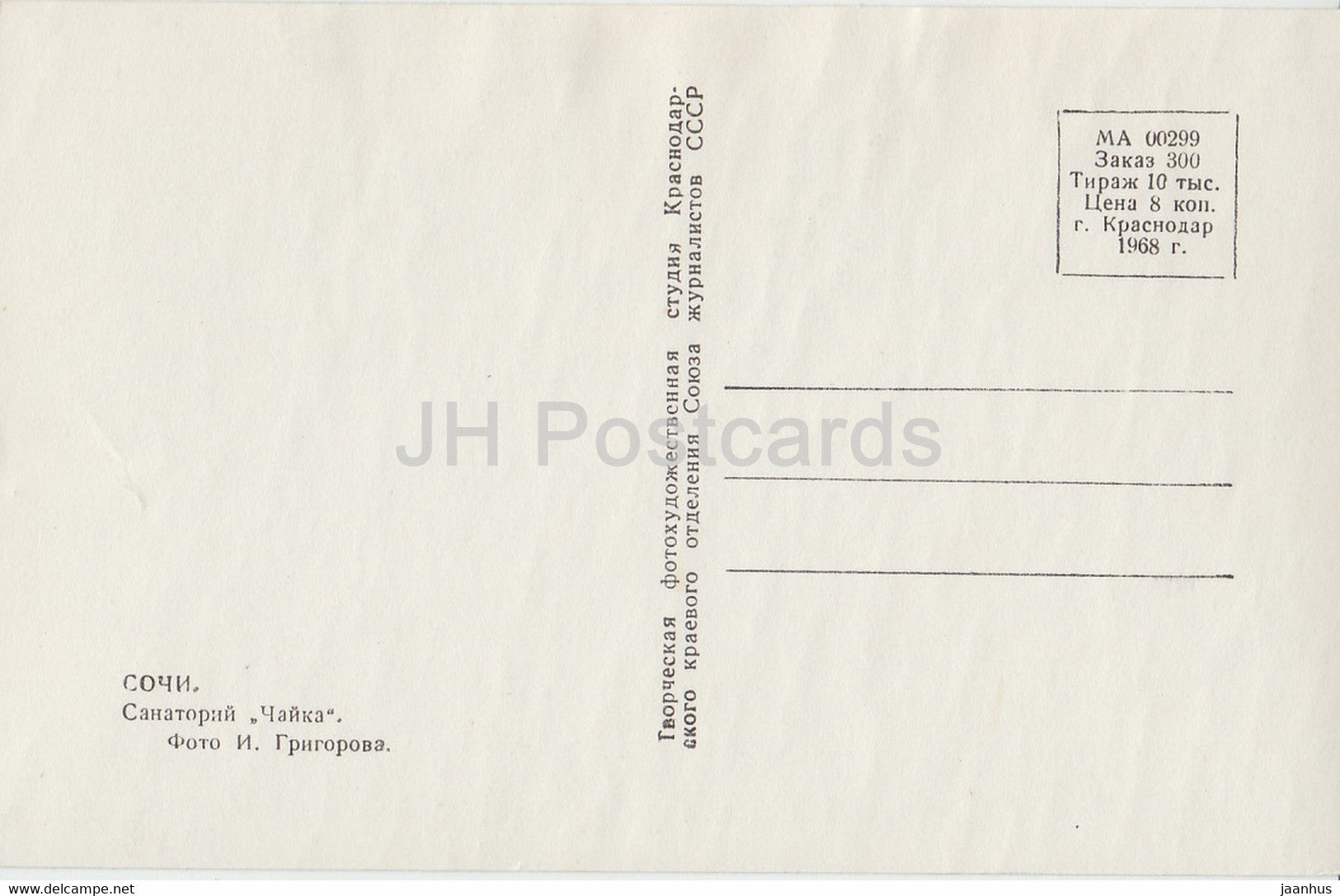 Sotchi - sanatorium Chayka (Mouette) - voiture Volga - 1968 - Russie URSS - inutilisée