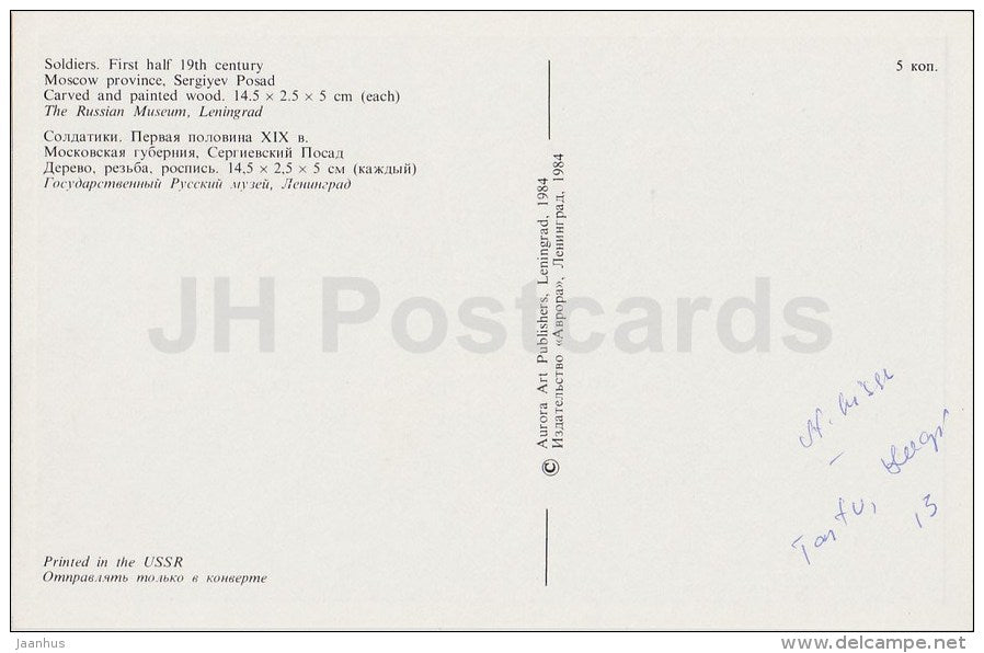 Soldats, province de Moscou - Jouets folkloriques russes - 1984 - Russie URSS - inutilisé
