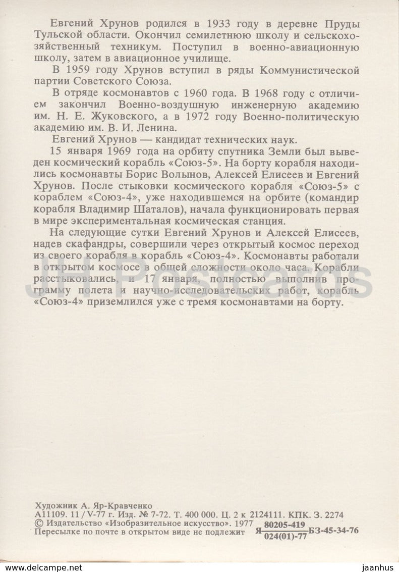Cosmonaute soviétique Yevgeny Khrunov - espace - 1977 - Russie URSS - inutilisé