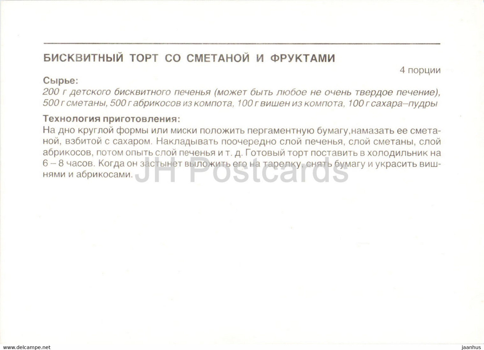 Génoise à la crème sure et aux fruits - Plats végétariens - recettes - 1989 - Russie URSS - inutilisé