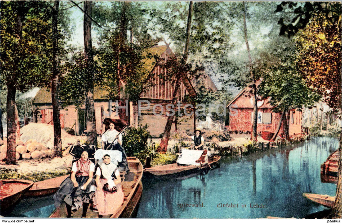 Spreewald - Einfahrt à Lehde - bateau - costumes folkloriques - carte postale ancienne - Allemagne - inutilisé