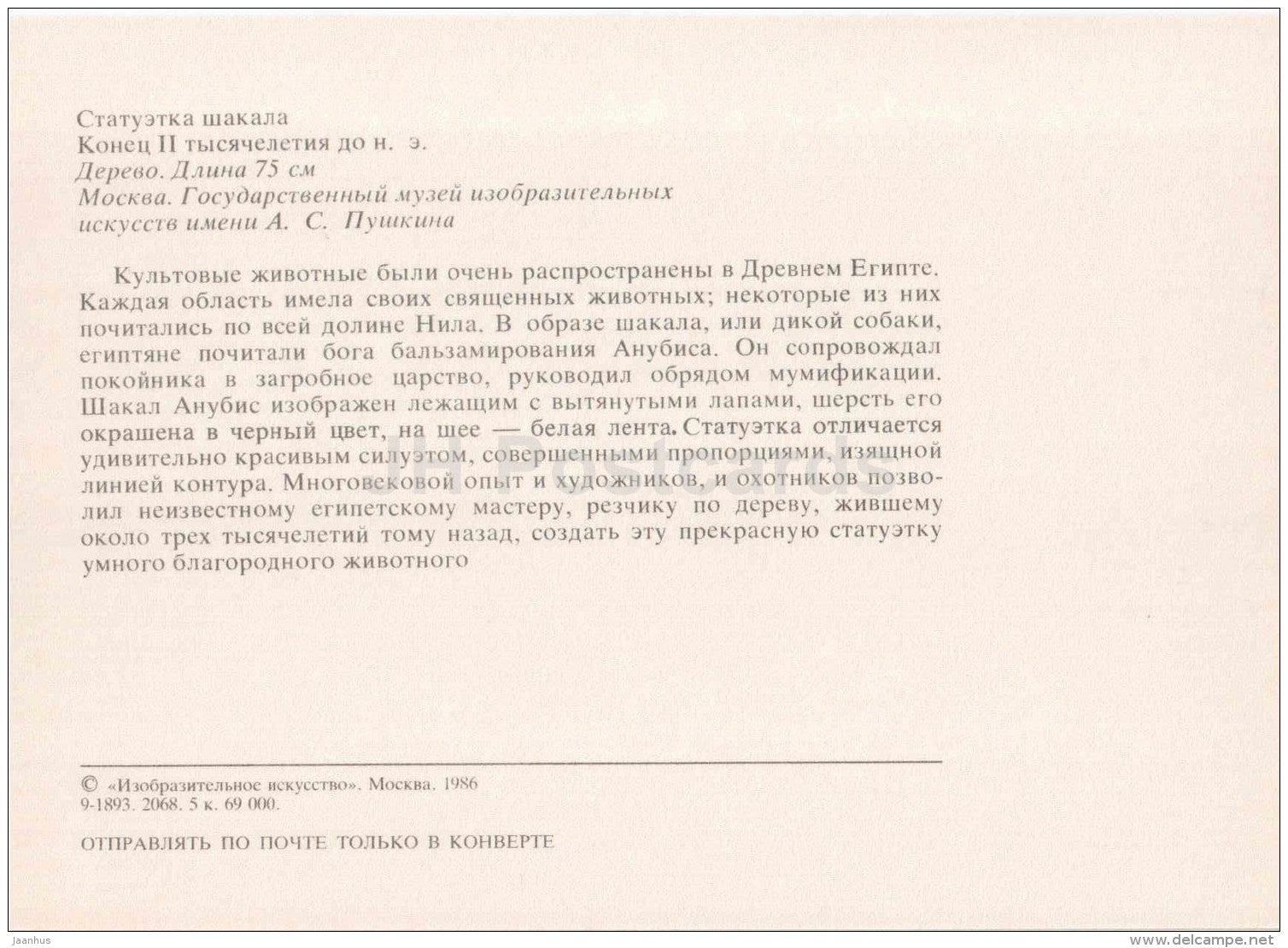 statue du Chacal - Art de l'Egypte ancienne - 1986 - Russie URSS - inutilisé